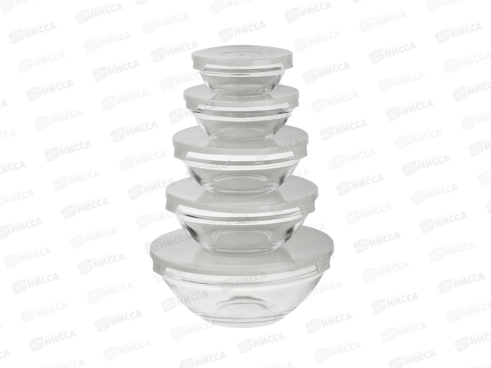 Код:601142; Набор салатников с крышкой 5шт стекло, серый MILLIMI 878-609 г
