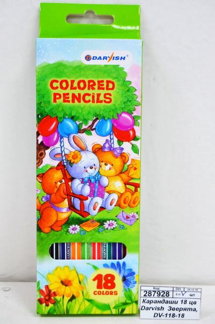 Код:287928; Карандаши 18 цветов Darvish Зверята, DV-118-18 пластиковые *8/80