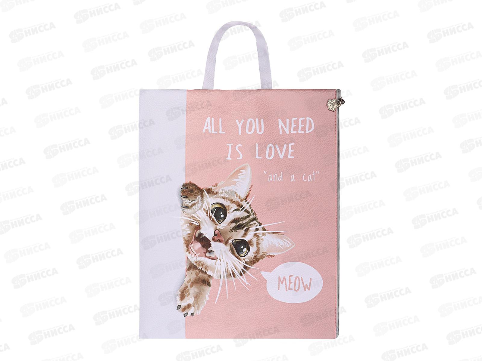 Код:557404; Папка на молнии BEIFA Котик А4 широка, с ручками А4-7С135 *3
