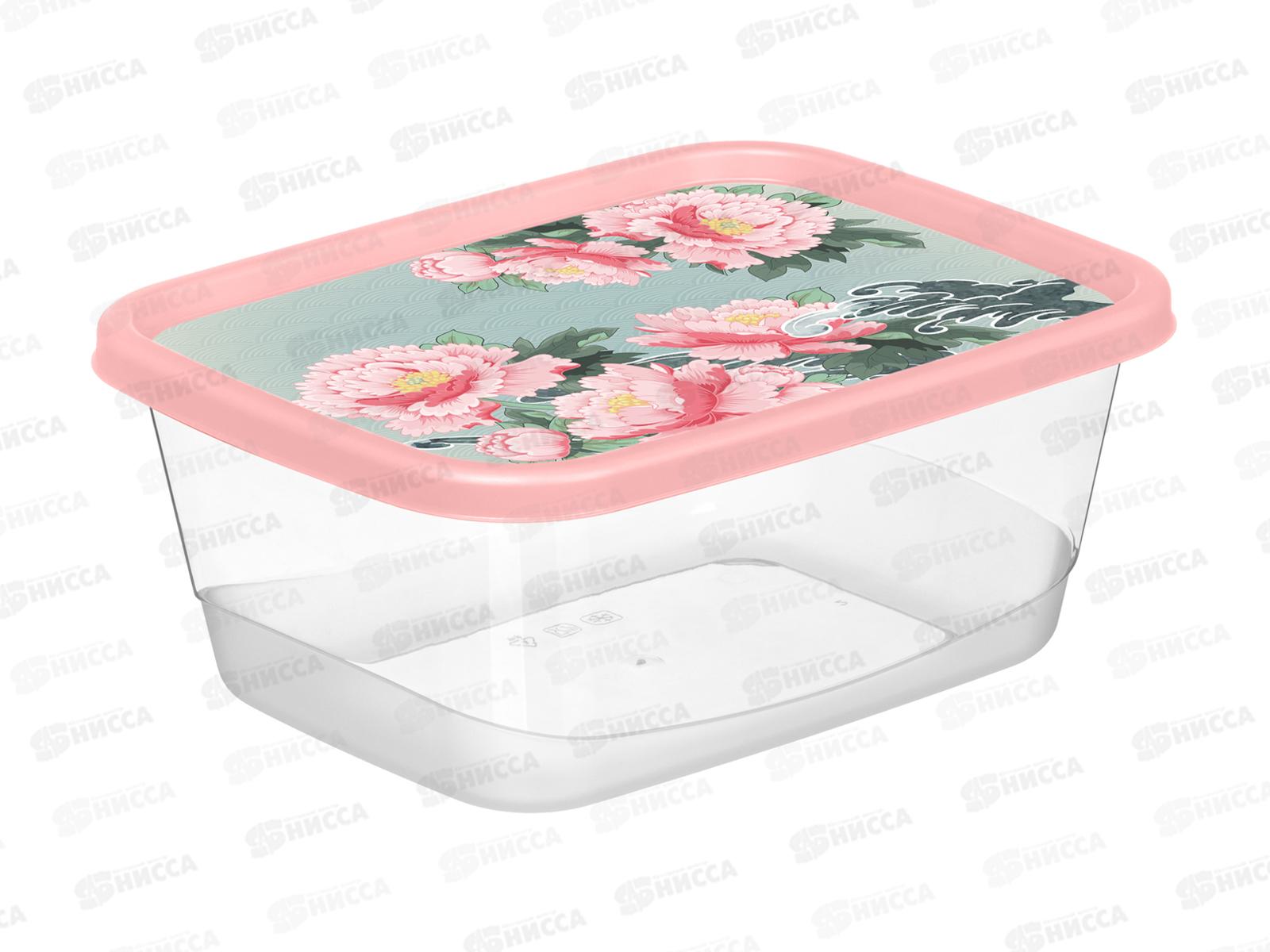 Код:601319; Контейнер 1,5л "Сад пионов" прямоугольный розовый 223151708/04