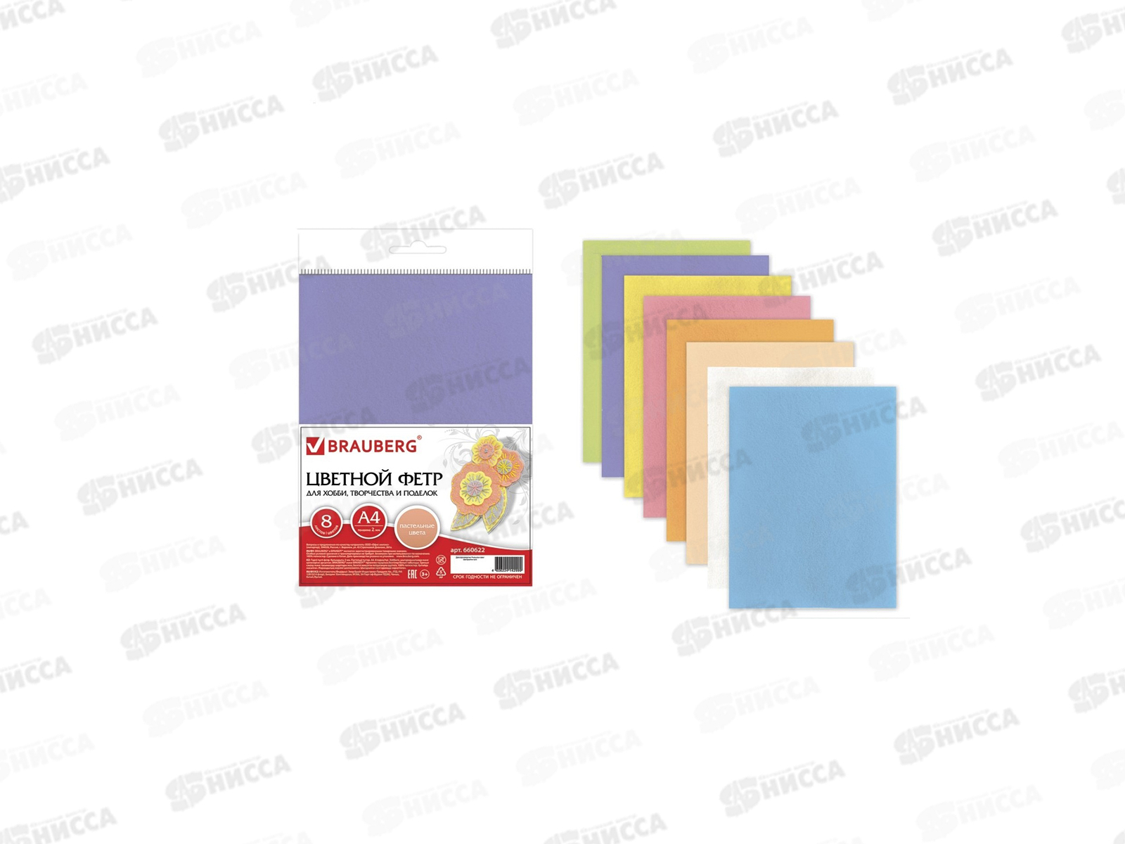 Код:193217; Цветной фетровый BRAU 8 листов, 8 цветов ,210*297,пастельные цвета,660622*20