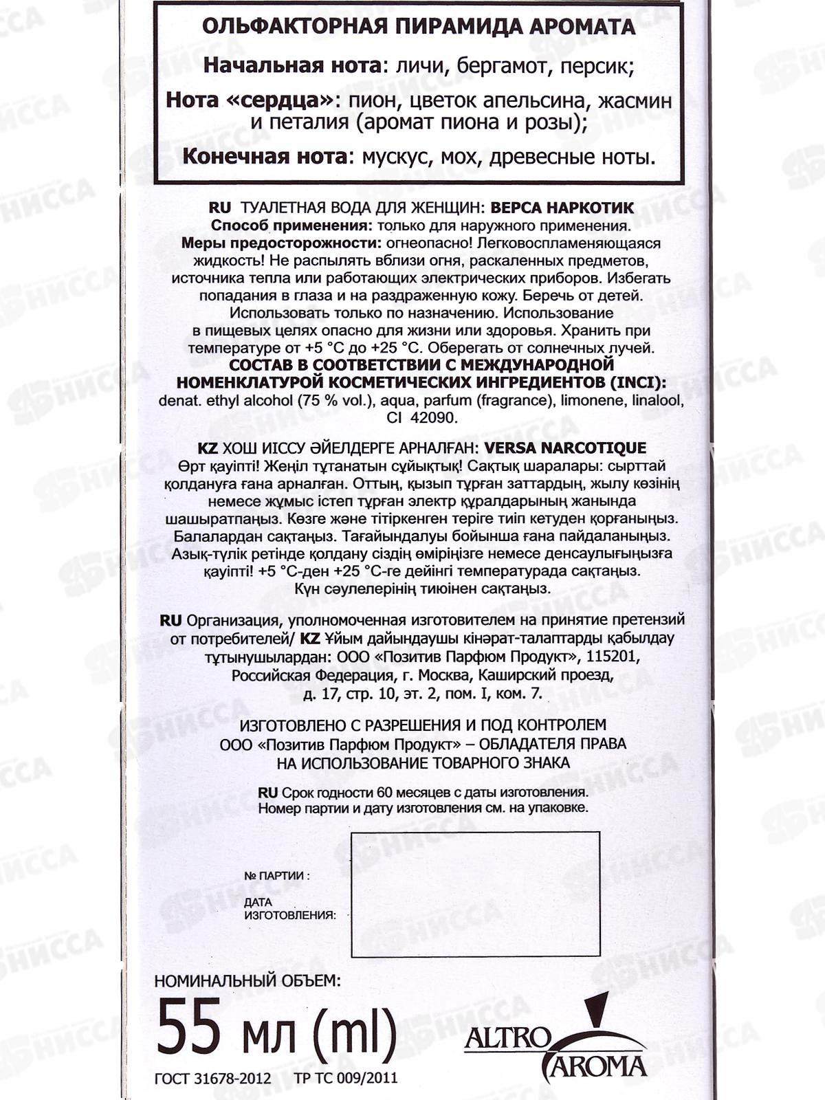 Versa Narcotique, 55мл т/в жен *20 М