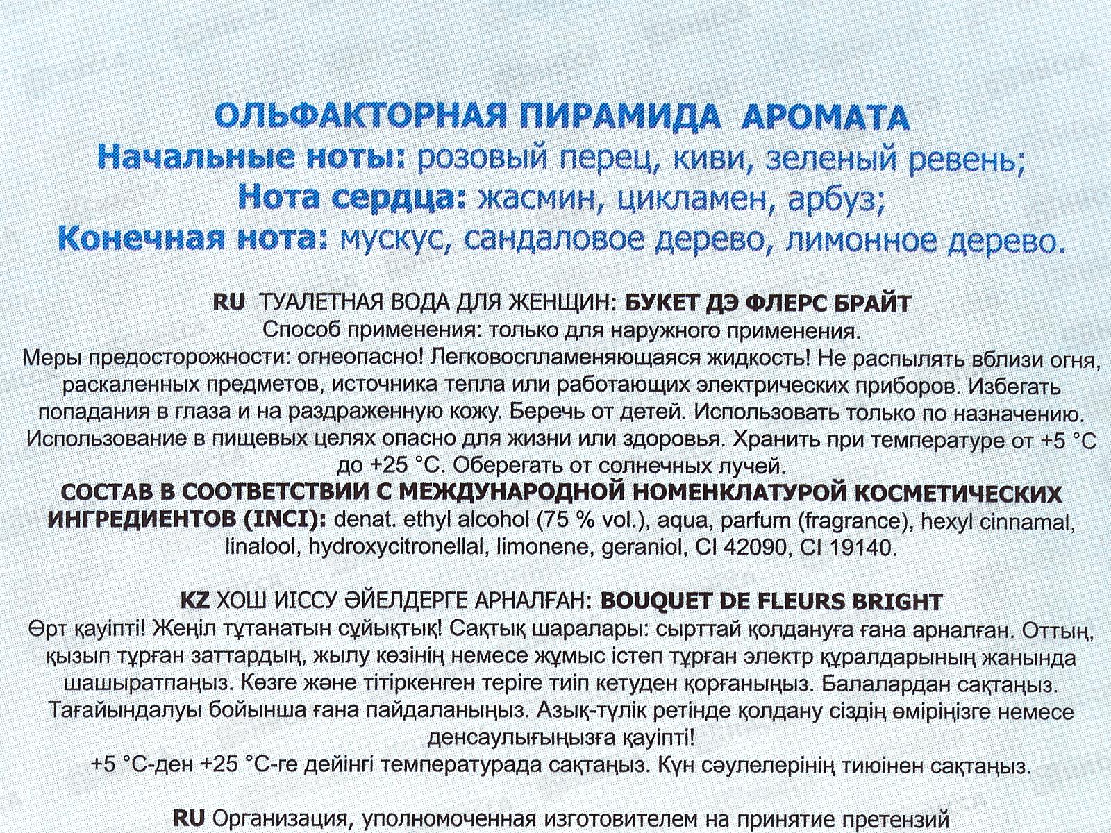 Bouquet De Fleurs Bright, т/в 95мл женская