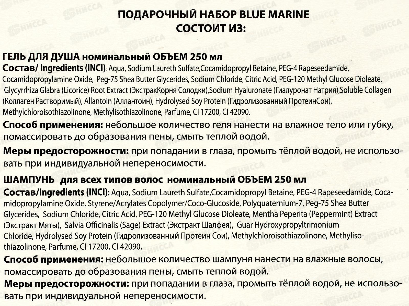 Набор подарочный Blue Marine (шампунь 250мл + гель для душа 250мл) мужской * 12