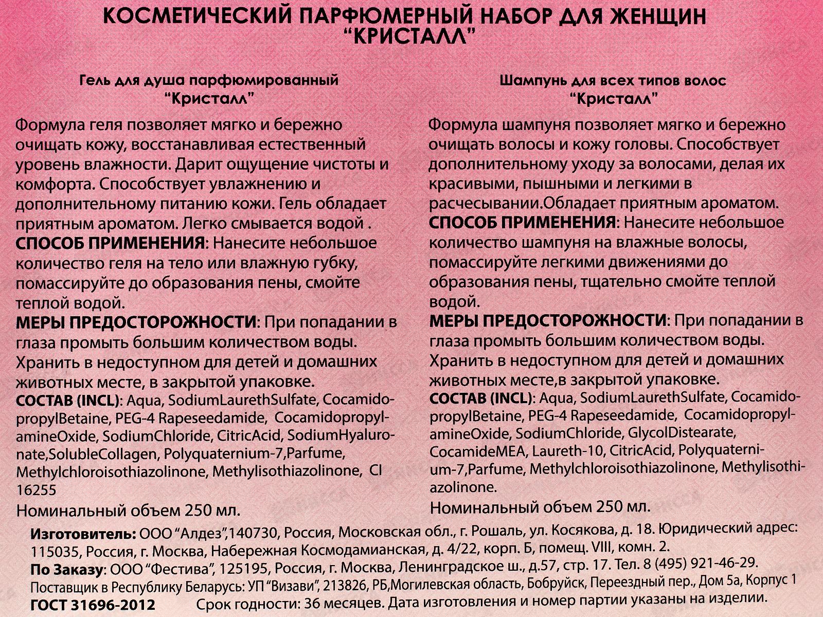 Набор подарочный CRYSTAL 191 (шампунь 250мл + гель для душа 250мл) женский *7