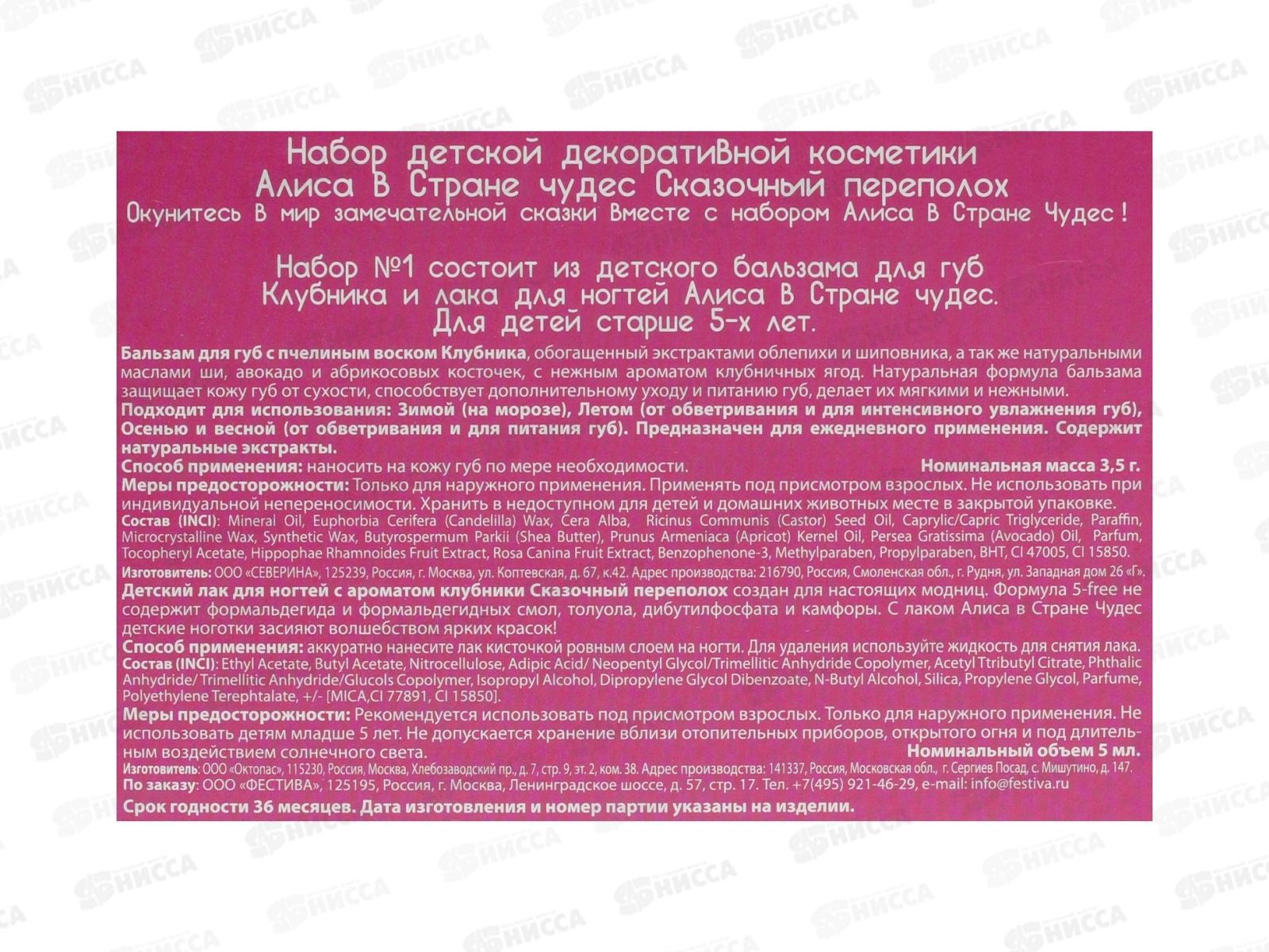 АЛИСА В СТРАНЕ ЧУДЕС Сказочный переполох набор (лак для ногтей+бальзам для губ)*12