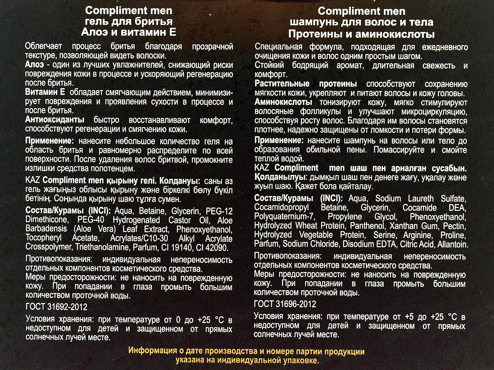 КОМПЛИМЕНТ Подарочный Набор men №1991 Энергия успеха гель для бритья+шампунь *8