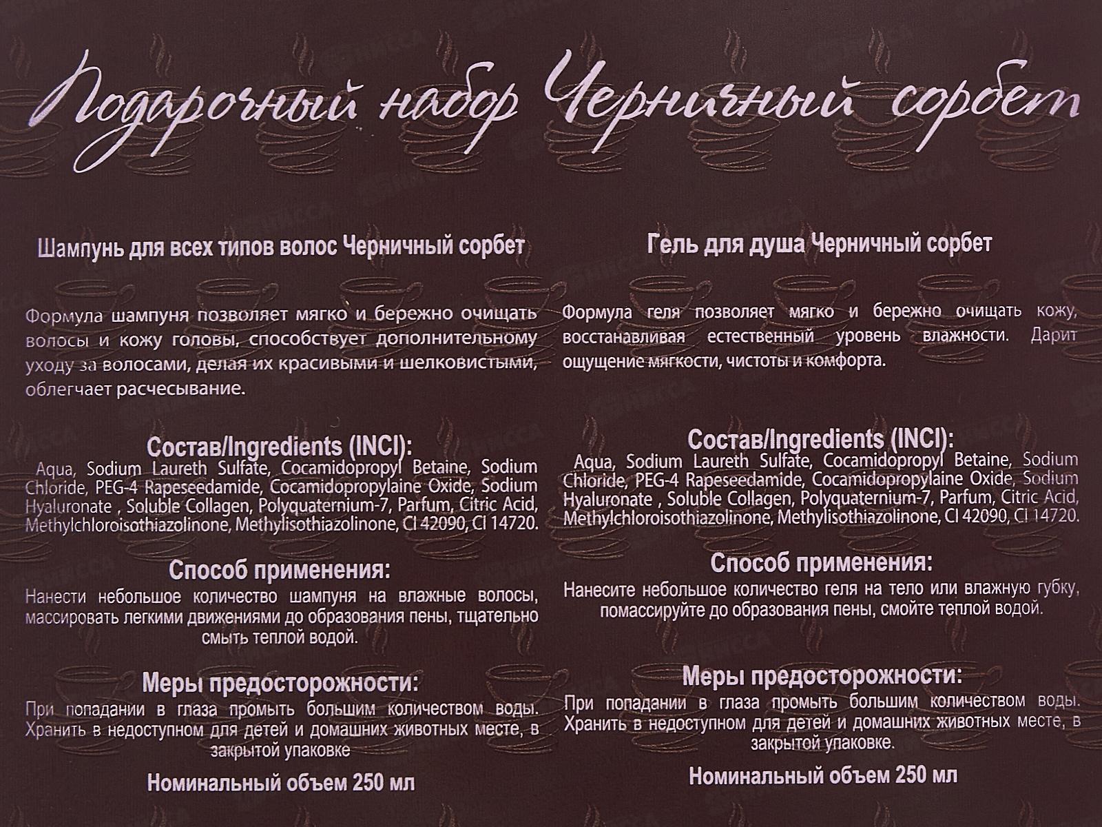 Sweet Food подарочный набор Черничный сорбет Гель душ 250мл+шампунь 250мл *12