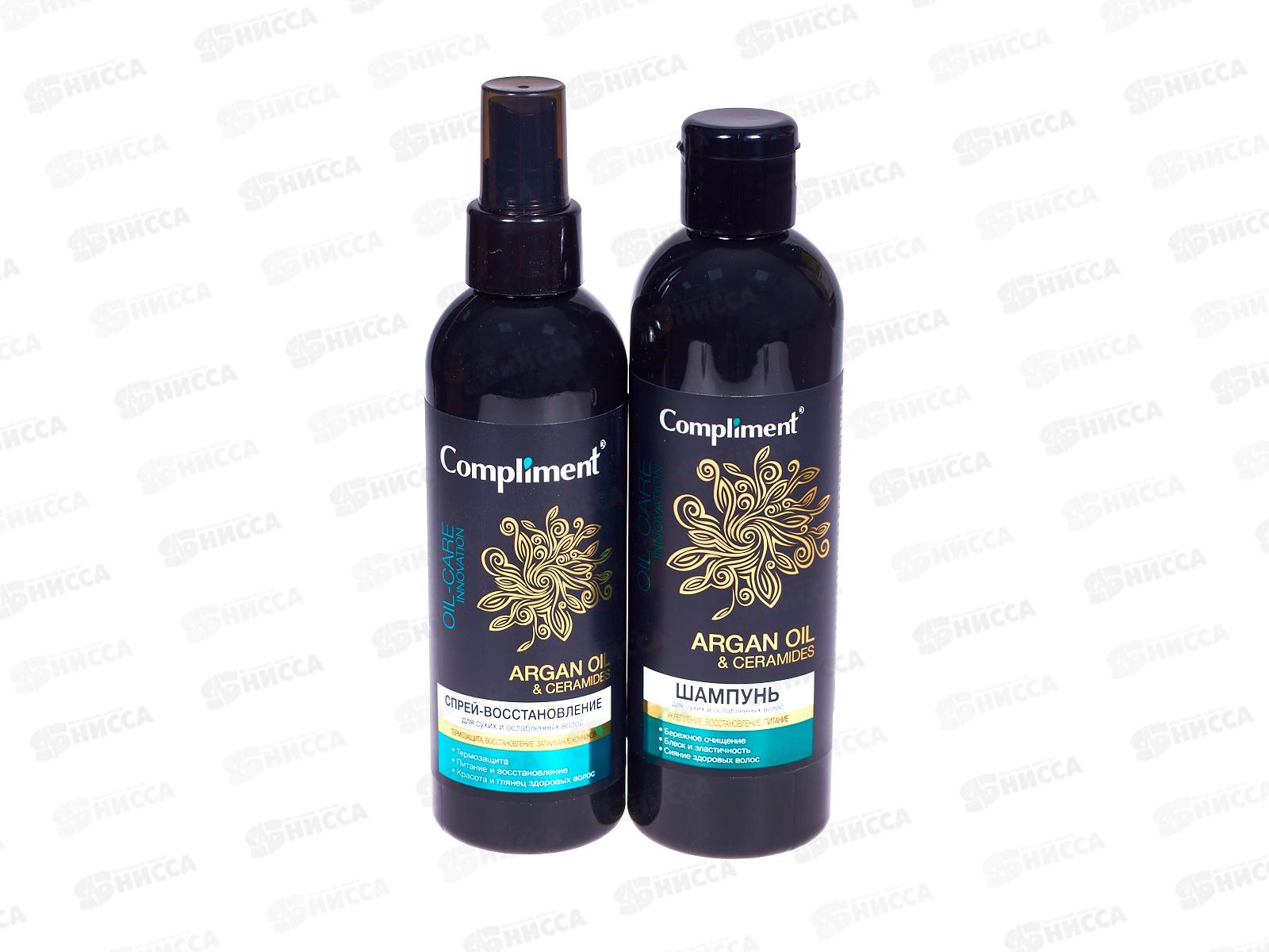 Состав шампуня: вода, лаурил глюкозид, глицерин, кокамидопропилбетаин, лауретсульфат натрия, кокамид ДЭА, ПЭГ-4 дистеариловый эфир, дистеариловый эфир, дикаприловый эфир, поликватерниум-7, хлорид натрия, феноксиэтанол, пантенол, ПЭГ-8, сополимер ПЭГ-8/SMDI, пальмитоил миристил серинат, полиакрилат натрия, пропиленгликоль, экстракт аргании колючей, парфюмерная композиция, гидроксипропилгуар, гидроксипропилтримония хлорид, лимонная кислота, динатриевая соль ЭДТА, CІ 19140, С. 16255, СІ 28440. Состав спрея: вода, глицерин, полиакриламидопропилтримония хлорид, пропиленгликоль, поликватерниум-22, ППГ-1-ПЭГ-9 лаурилгликолевый эфир, полисорбат 20, феноксиэтанол, ПЭГ-8, сополимер ПЭГ-8/SMDI, пальмитоил миристил сериналы, полиакрилат натрия, парфюмерная композиция, аргания колючая, кемелол, лимонная кислота, динатриевая соль ЭДТА.
