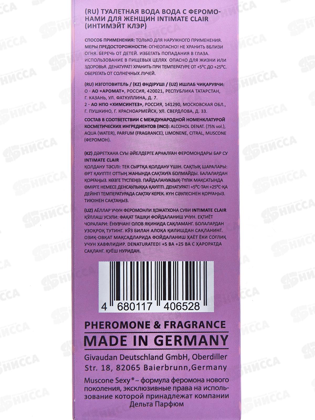 In. Intimate Clair, т/в с феромонами 30мл женская М