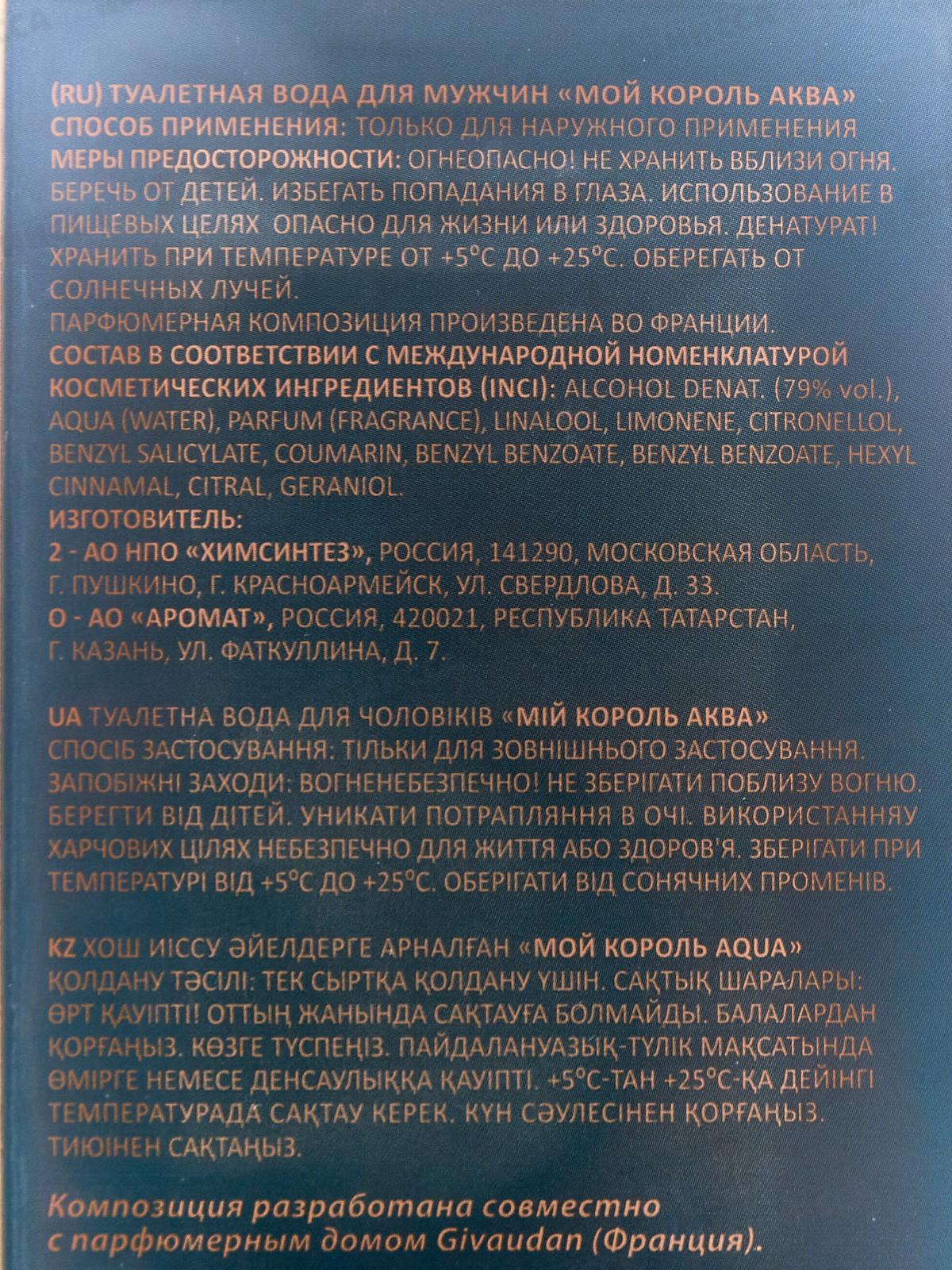 Мой Король Aqua, туалетная вода 100мл мужская 24 М