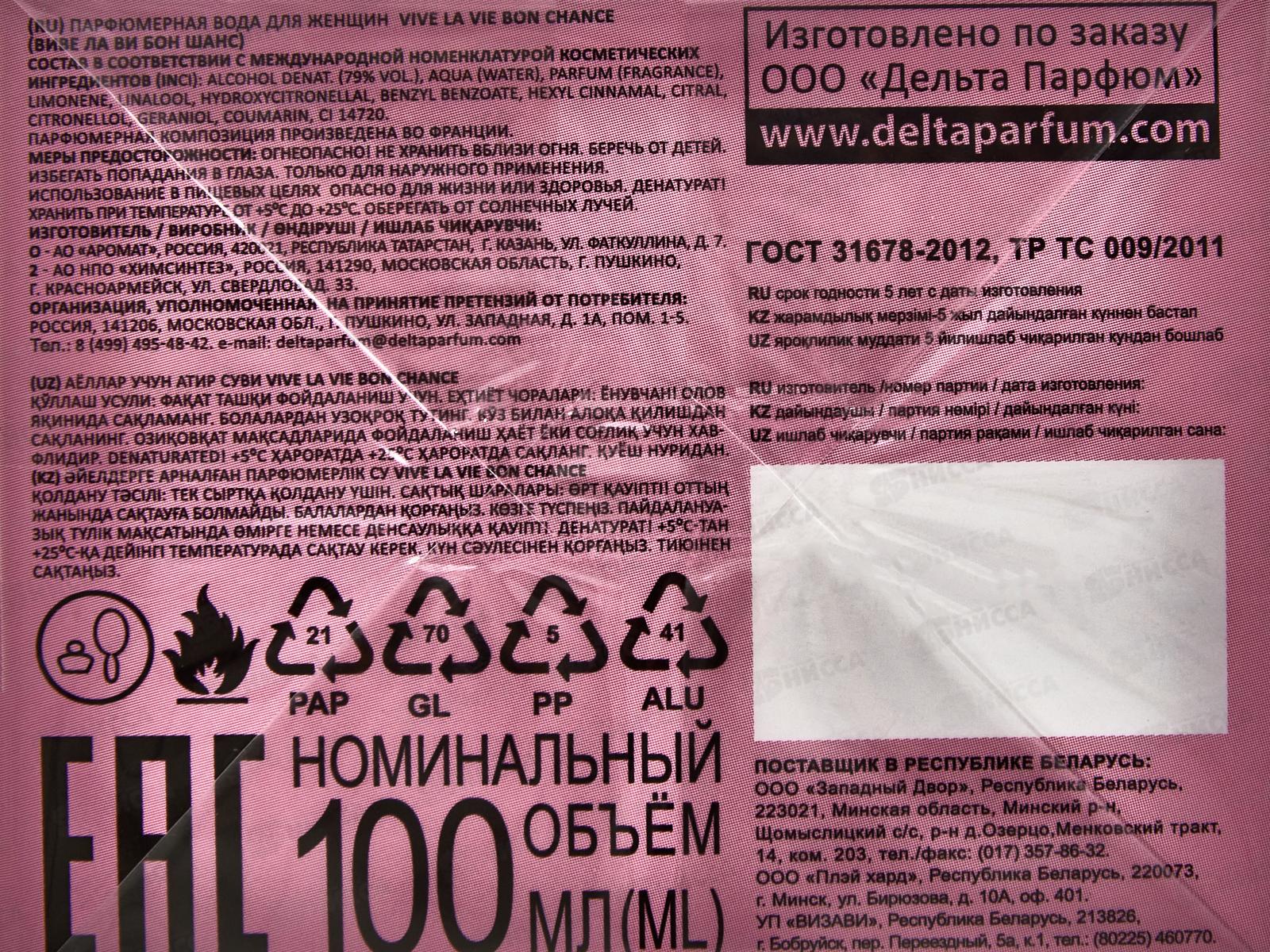 Vive la Vie Bon Chance, парфюмированная вода 100мл женская М