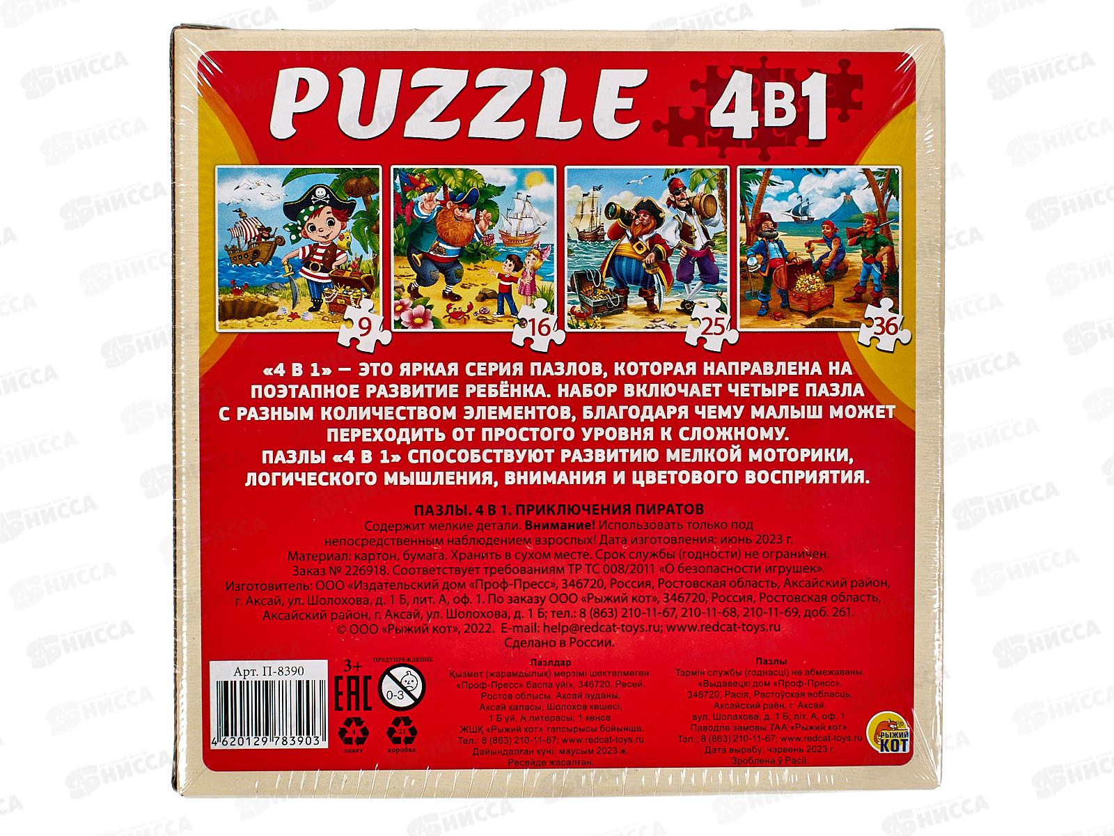 Пазлы 4 в 1. Приключения пиратов (9,16,25,36 элементов), П-8390 *20