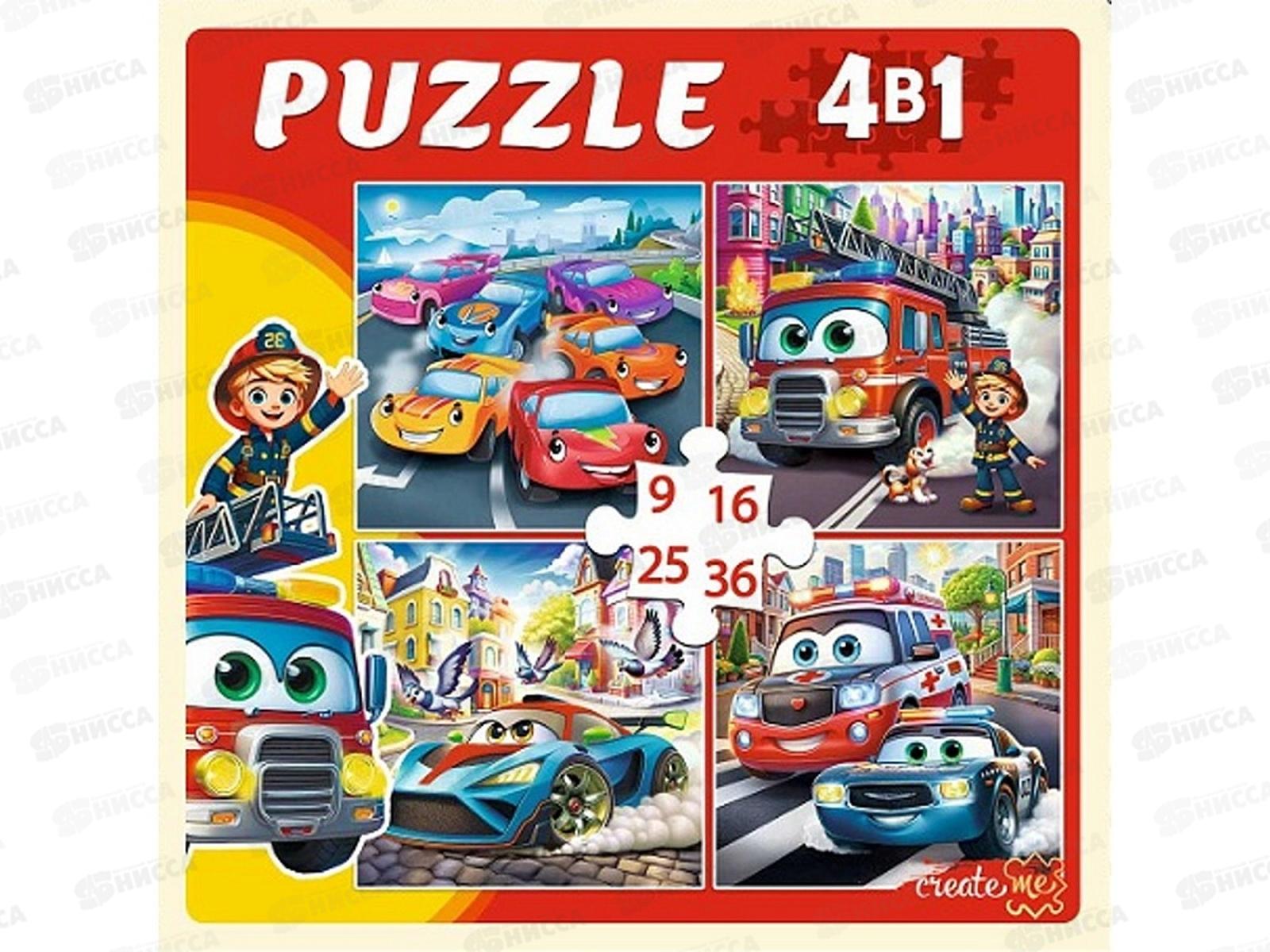 Пазлы 4 в 1. Машинки в городе (9,16,25,36 эл), П-7585 *20