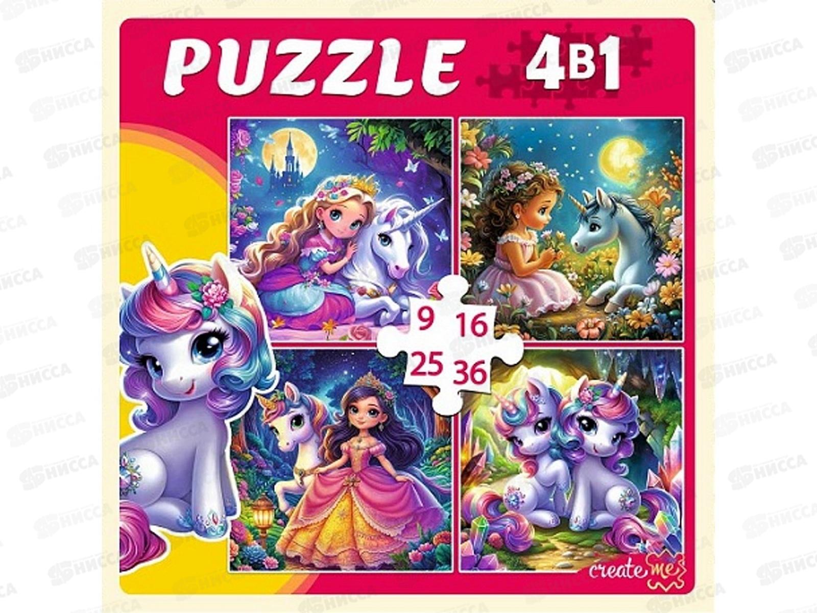 Пазлы 4 в 1. Принцессы и сказочные единороги (9,16,25,36 эл), П-7588 *20