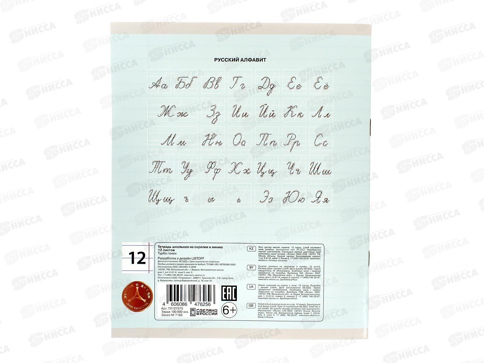 Тетрадь 12листов линия ЭКСМ Турбо гонки мел., ТЛ127575 *100