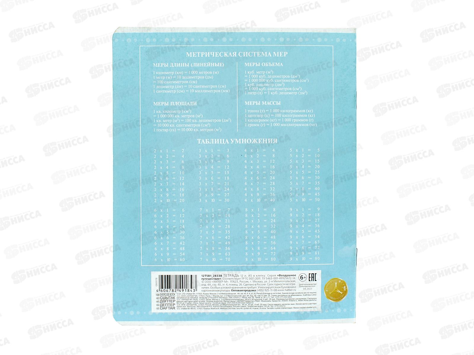 Тетрадь 12листов клетка Hatber Воздушное путешествие,080078*10/140