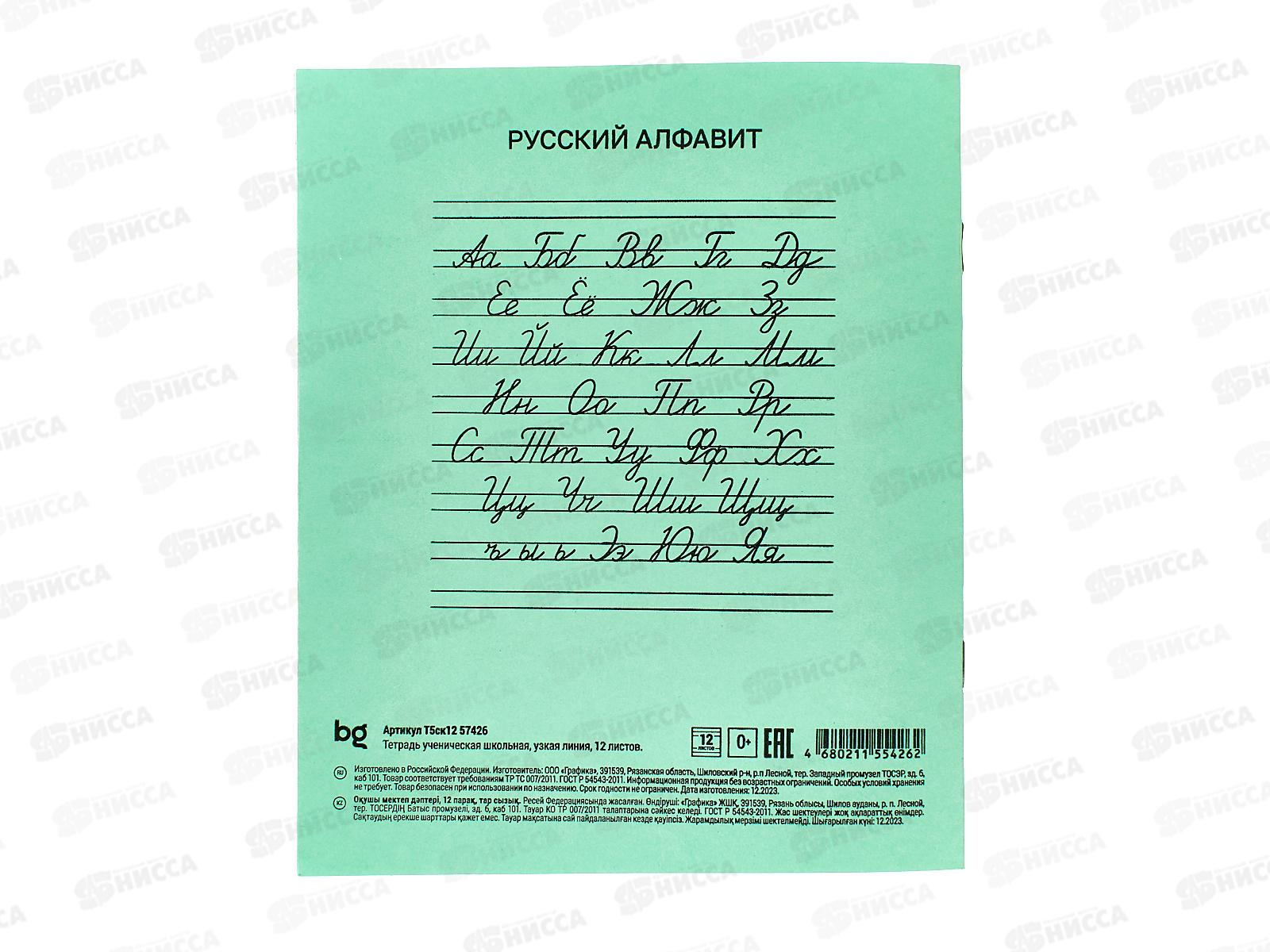 Тетрадь 12листов в узкую линию BG 57426*240