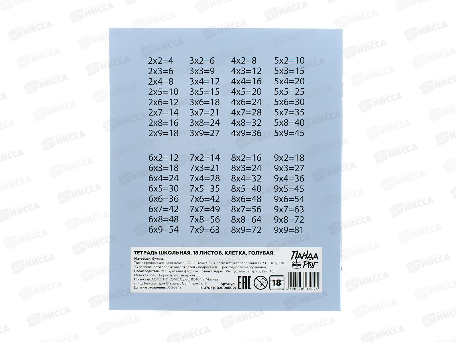 Тетрадь 18л клетка ПандаРог, голубая, 15-3707 *220