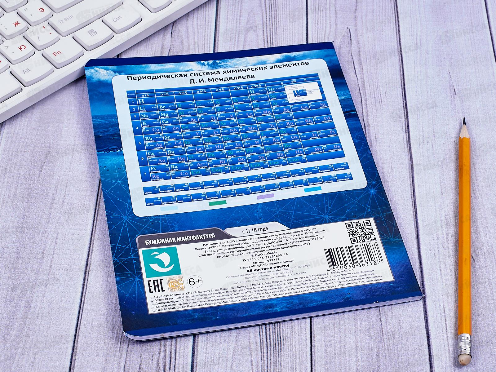 Тетрадь 48 листов клетка. ПЗБМ Голубой океан Химия 027187*5/50
