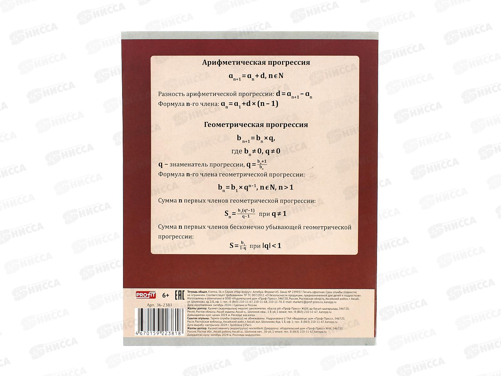 Тетрадь 36л клетка Profit "Мир вокруг" Алгебра, эконом, 36-2381 *10/80
