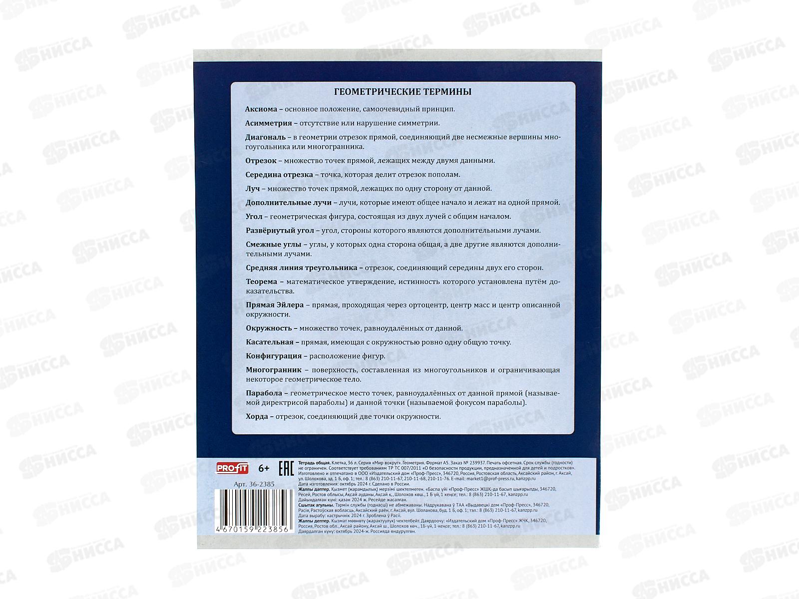 Тетрадь 36л клетка Profit "Мир вокруг" Геометрия, эконом, 36-2385 *10/80