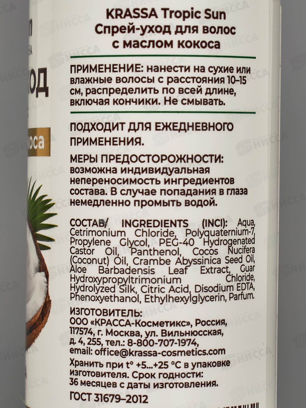 Krassa Tropic SUN Спрей уход для волос с маслом кокоса 100мл *18