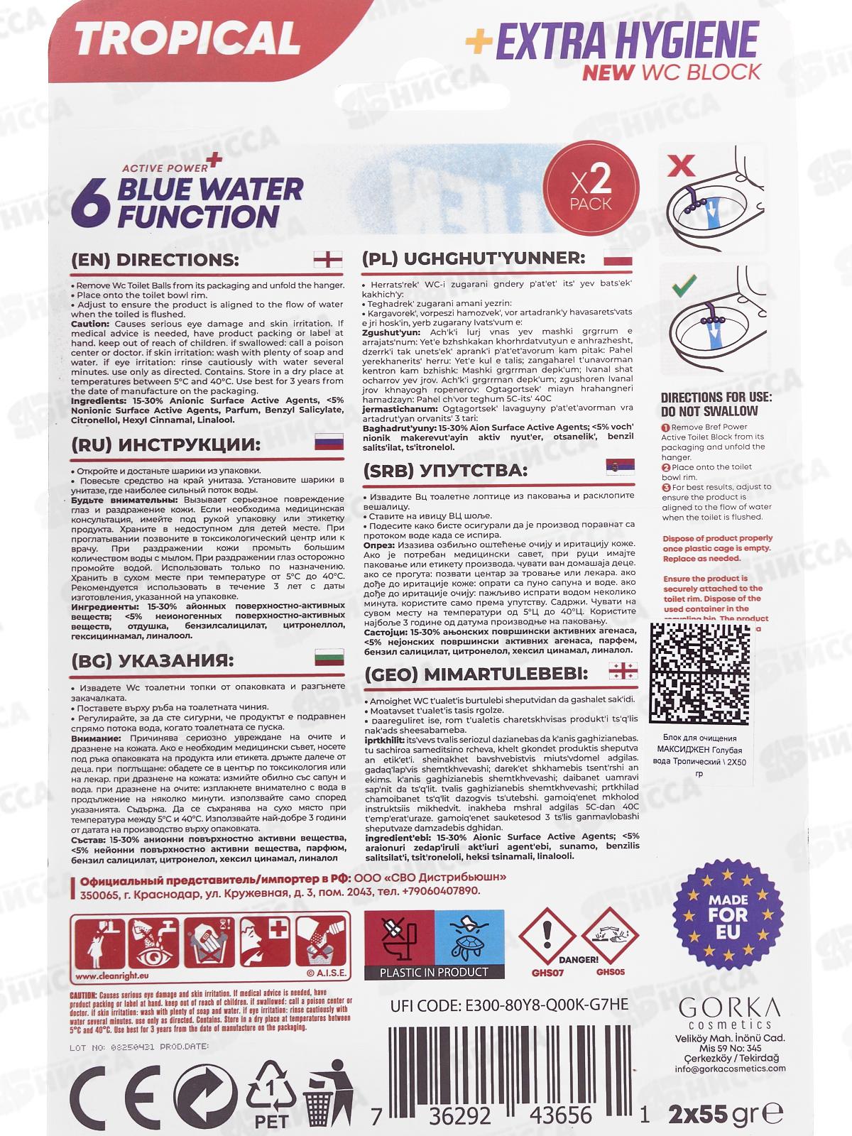 SVO Максиджен WC блок Голубая вода TROPICAL 2*55г *80