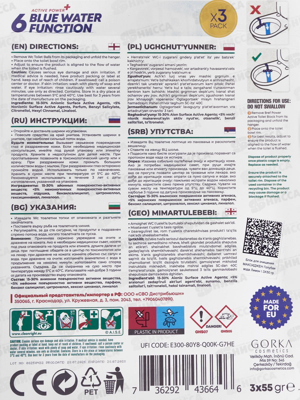 SVO Максиджен WC блок Голубая вода LEMON 3*55г *60