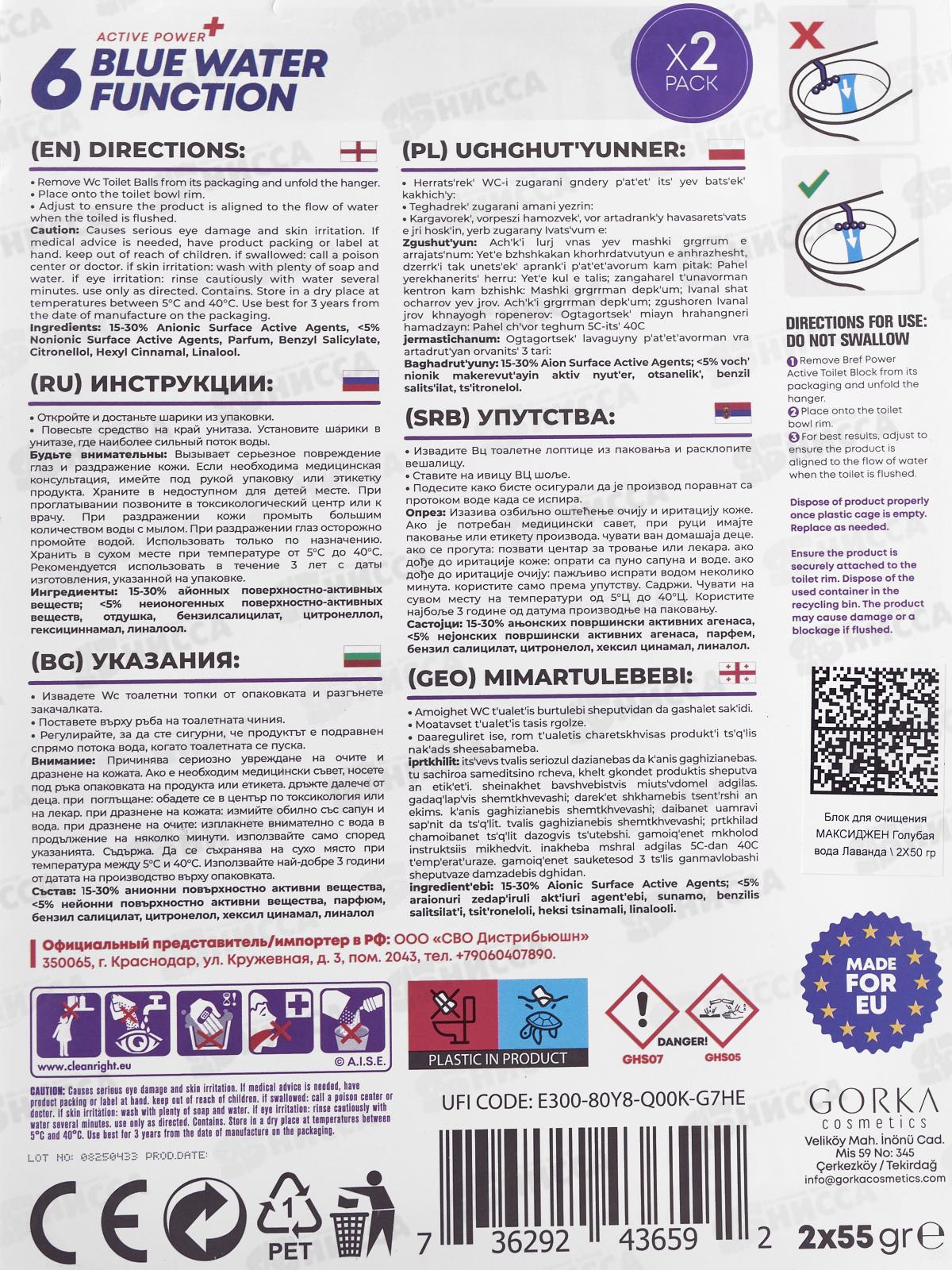 SVO Максиджен WC блок Голубая вода LAVANDER 2*55г *80