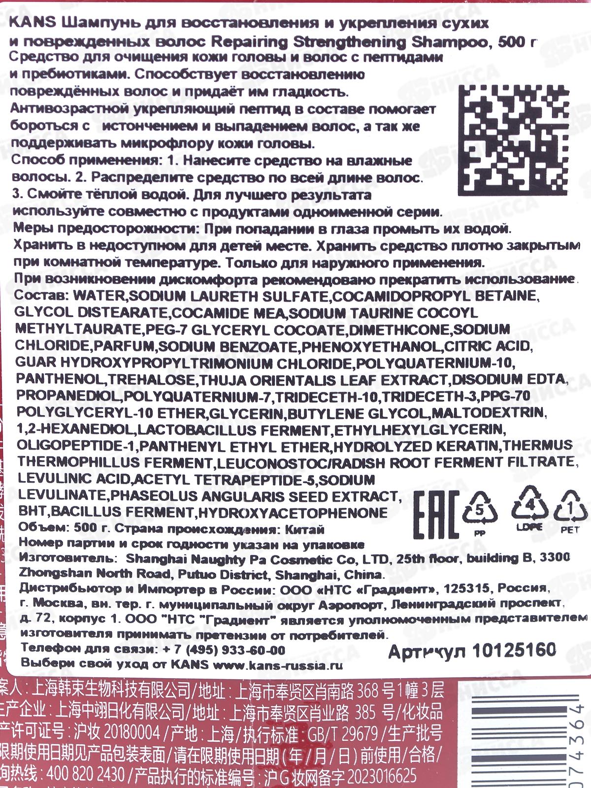 KANS Шампунь для восстан и укр сухих вол Repairing Strengthening 500г