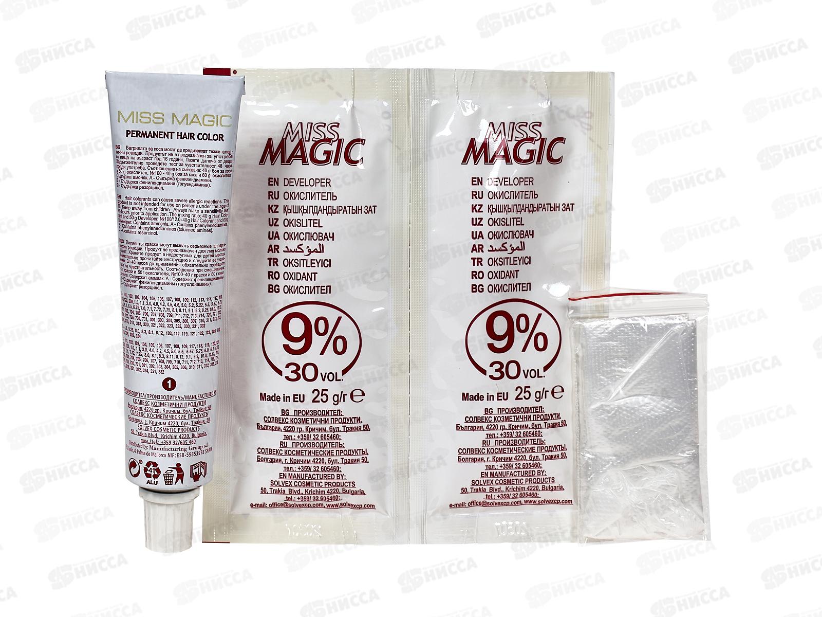 Краска для волос Miss Magic обеспечивает равномерное и стойкое окрашивание, 100% закрашивание седины, удобное и быстрое применение. Благодаря экстракту крапивы и витаминам Ваши волосы сохраняют мягкость, восхитительный блеск и здоровый вид. Miss Magic - яркий, насыщенный, свежий цвет надолго! Не рекомендуется окрашивать волосы непосредственно после химической завивки, выпрямления волос, обесцвечивания, окрашивания хной.