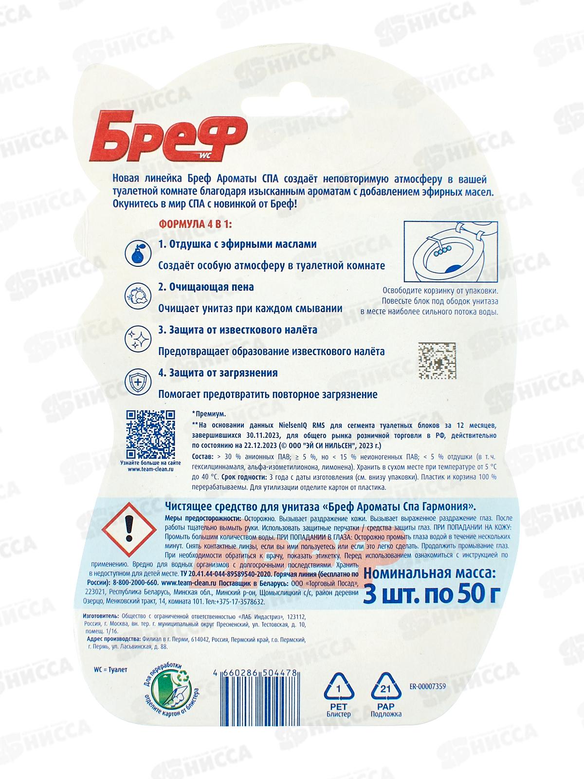 БРЕФ Ароматы СПА чистящее средство для унитаза Гармония 3*50г
