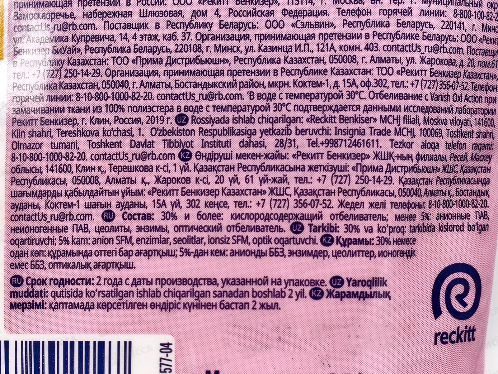 Тип товара: Пятновыводитель и отбеливатель для тканей