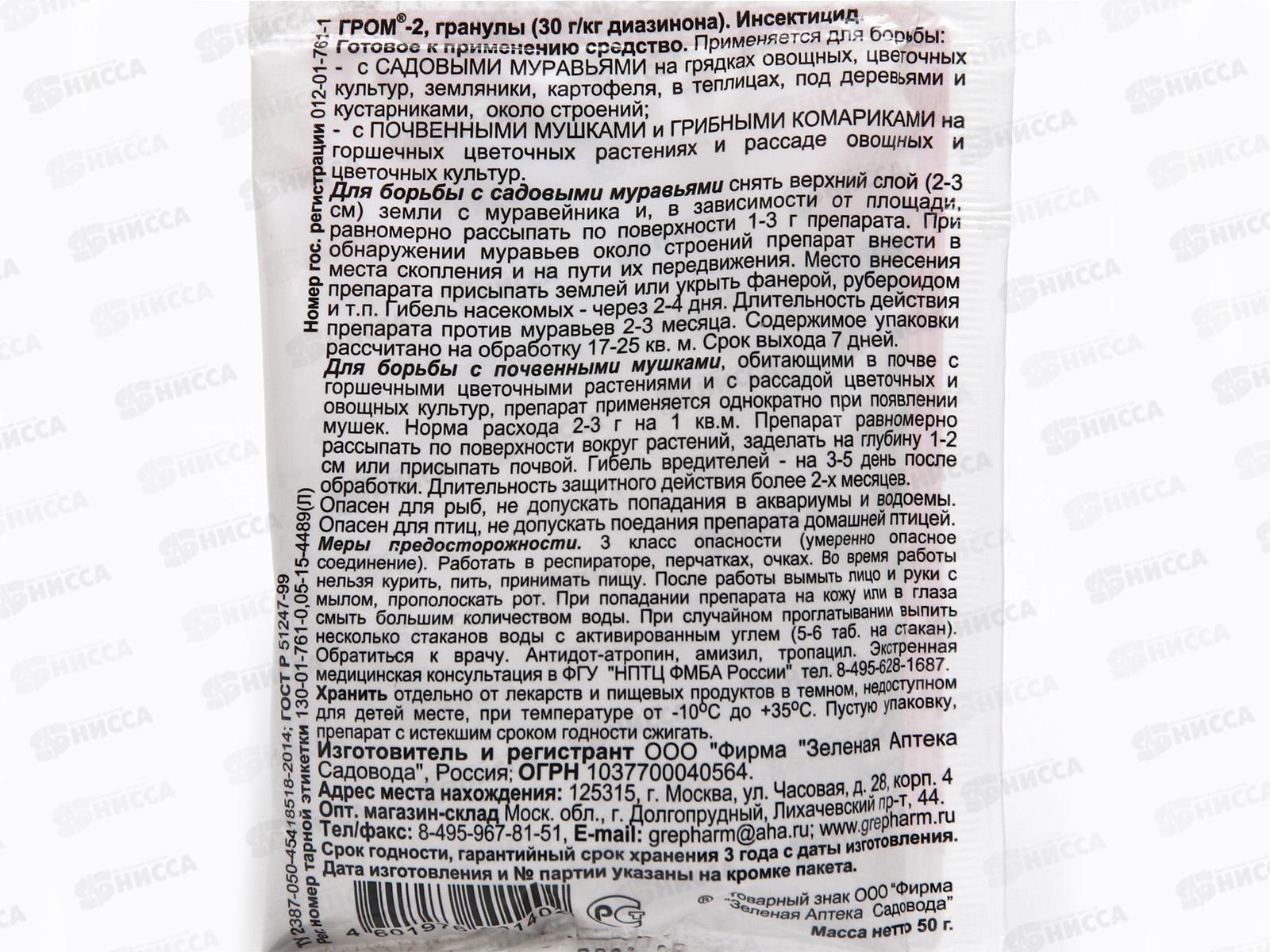 ГРОМ-2М 50гр Садовые муравьи, почвенные комнатные мушки *100 ЗА