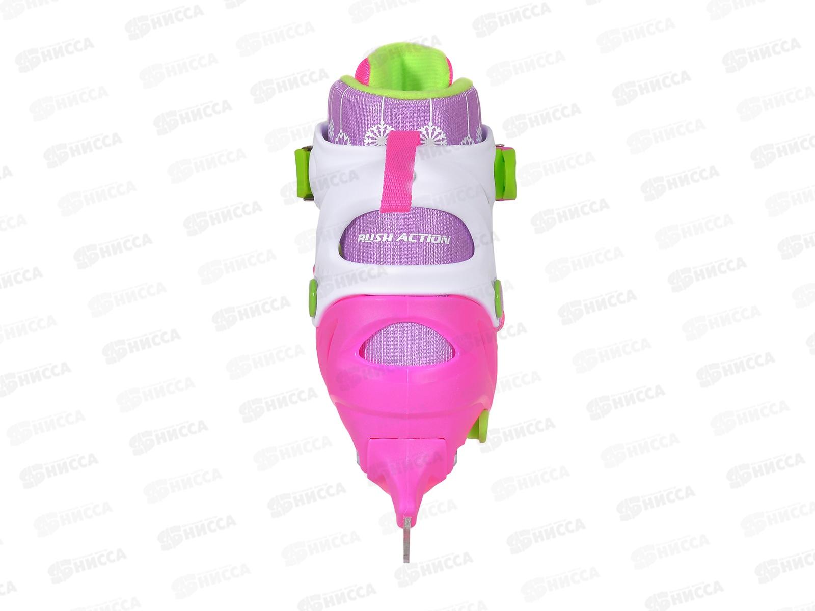 Коньки раздвижные GW-901D-2 р.27-30 бело-розовые RUSH ACTION, 235130