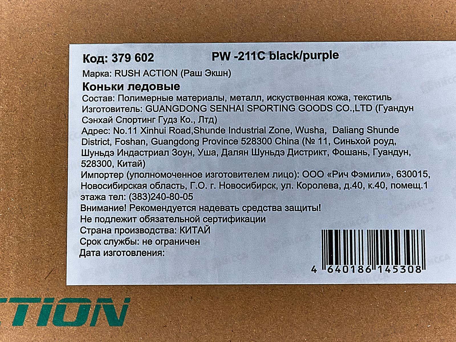 Коньки раздвижные р.38-41 black/purple RUSH ACTION, 379602