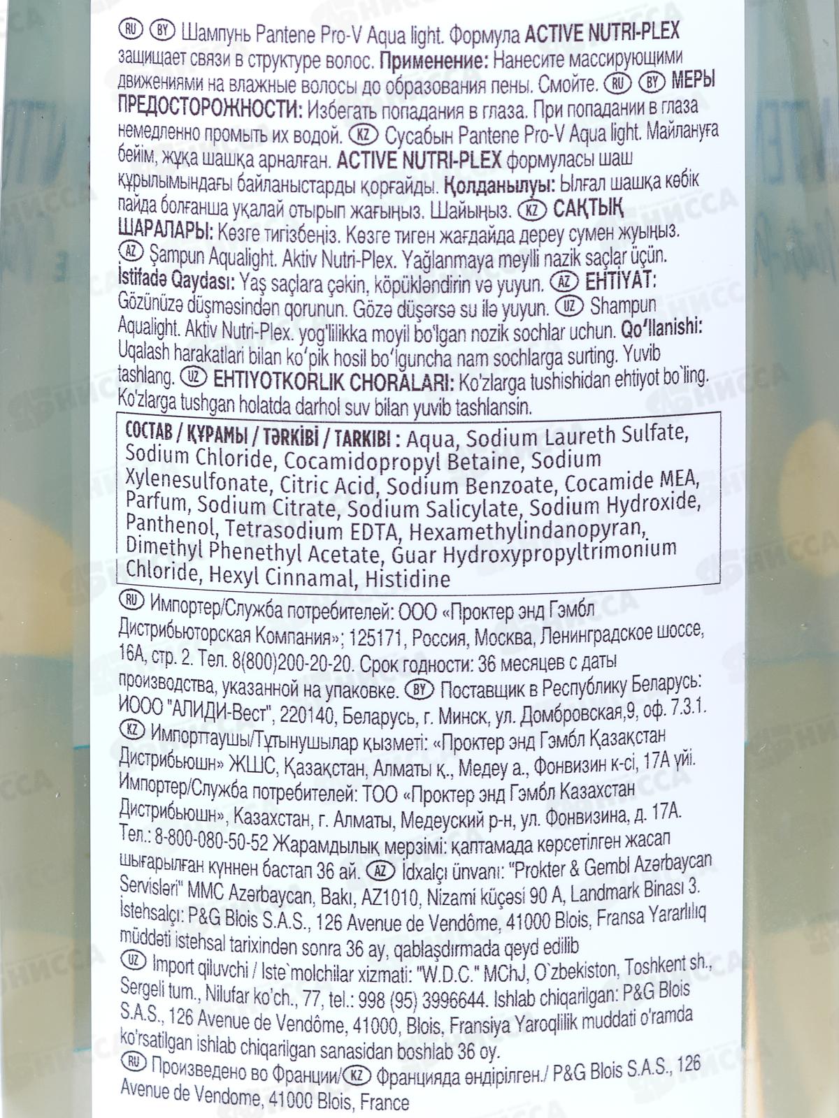 ПАНТИН шампунь 400/360мл Aqua Light для тонких и склонных к жирности волос *6