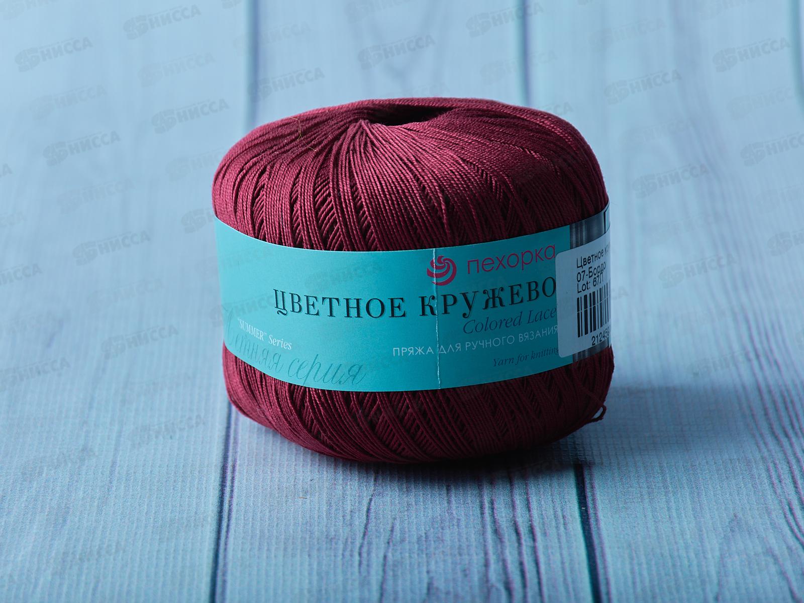 Пряжа Цветное кружево 07 Бордо 50гр Хлопок100%