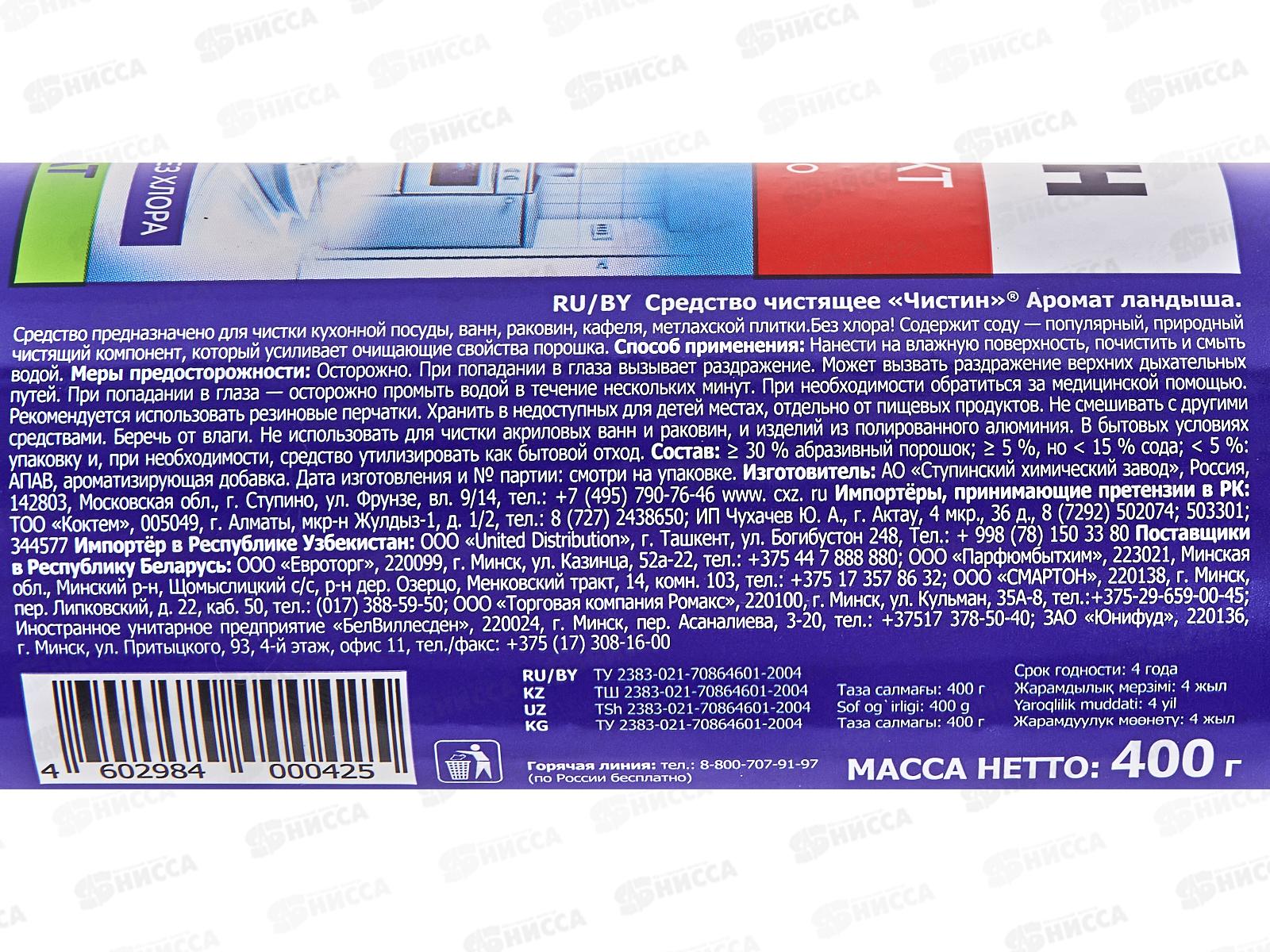 ЧИСТИН чистящий порошок 400гр ЛАНДЫШ банка *20