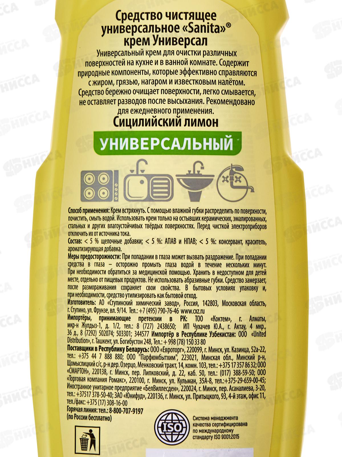 САНИТА-КРЕМ Универсал 600мл Сицилийский лимон *12 Н.Д. 22952