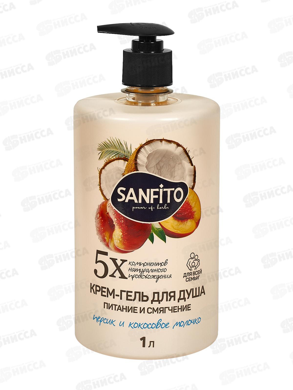 Sanfito Крем-гель для душа Персик и кокосовое молочко пит и смяг 1л *8