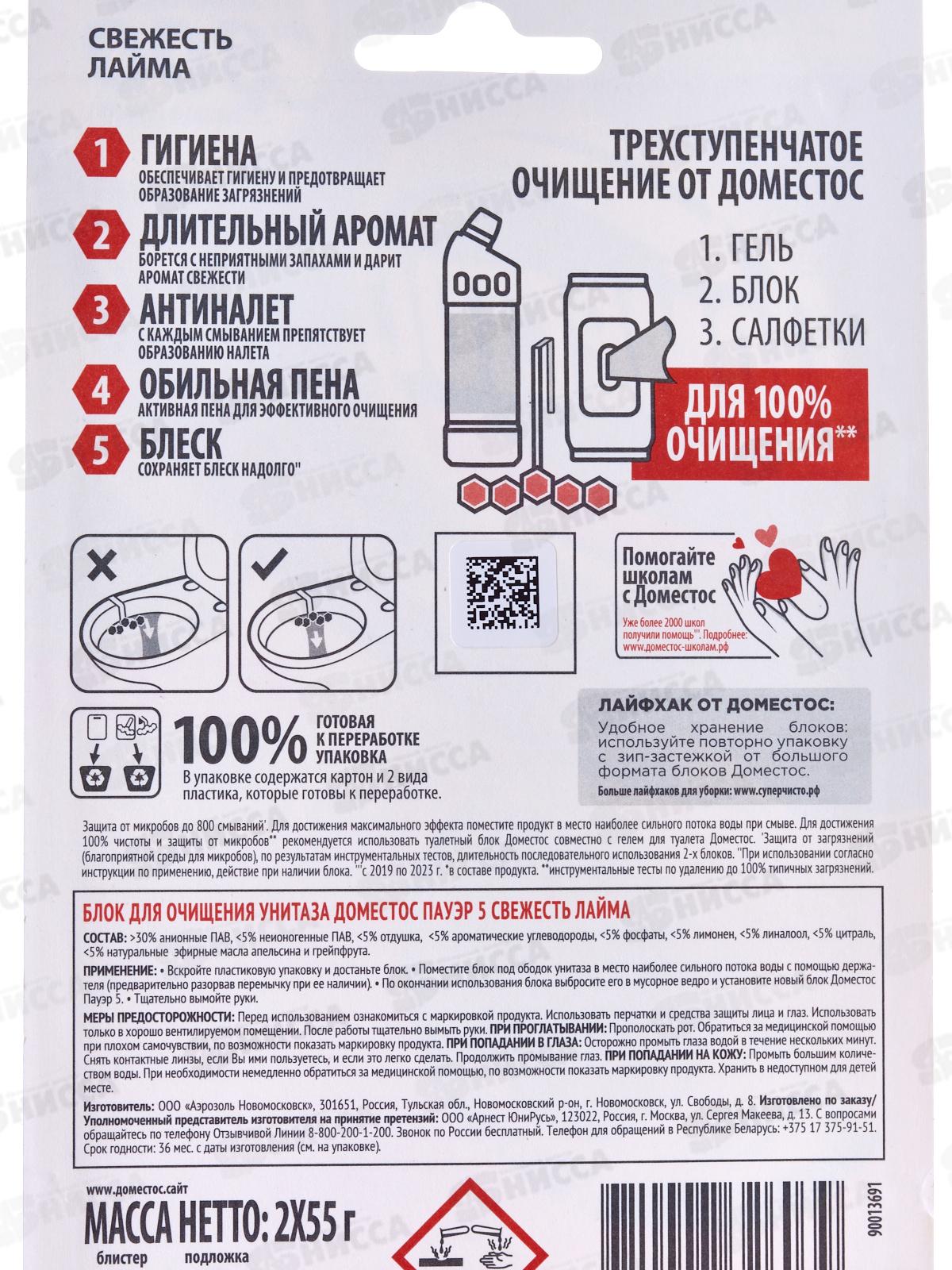 ДОМЕСТОС блок для унитаза Свежесть лайма 2*55г *7