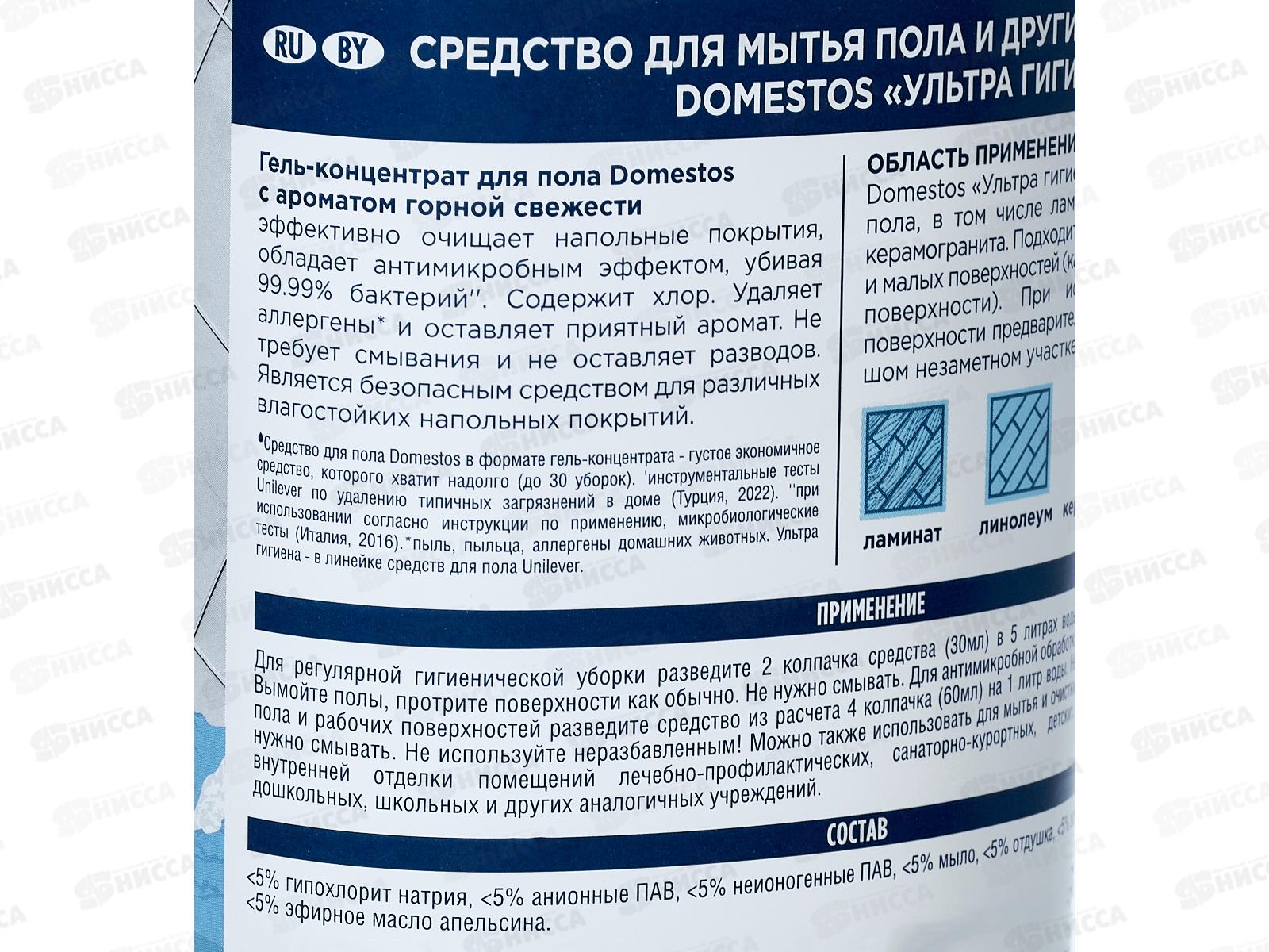 ДОМЕСТОС Гель-концентрат для пола 1л Горная свежесть *12