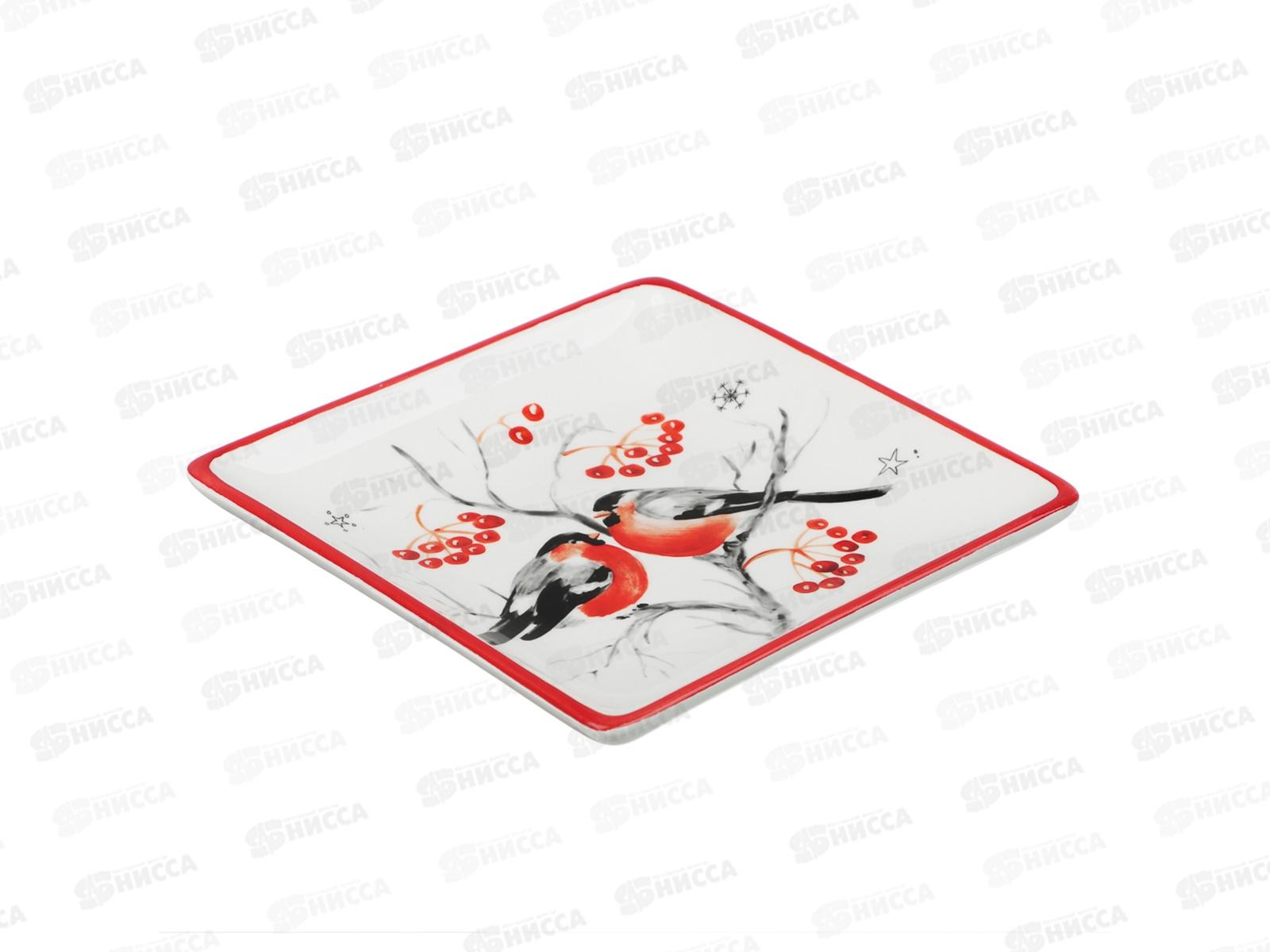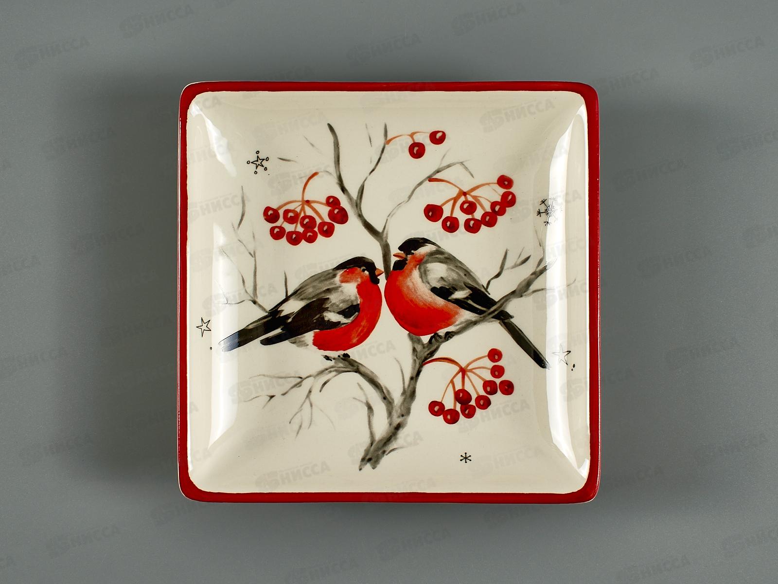 Блюдо "Снегири" квадратное 15*15*2,9см керамика 820-681 г