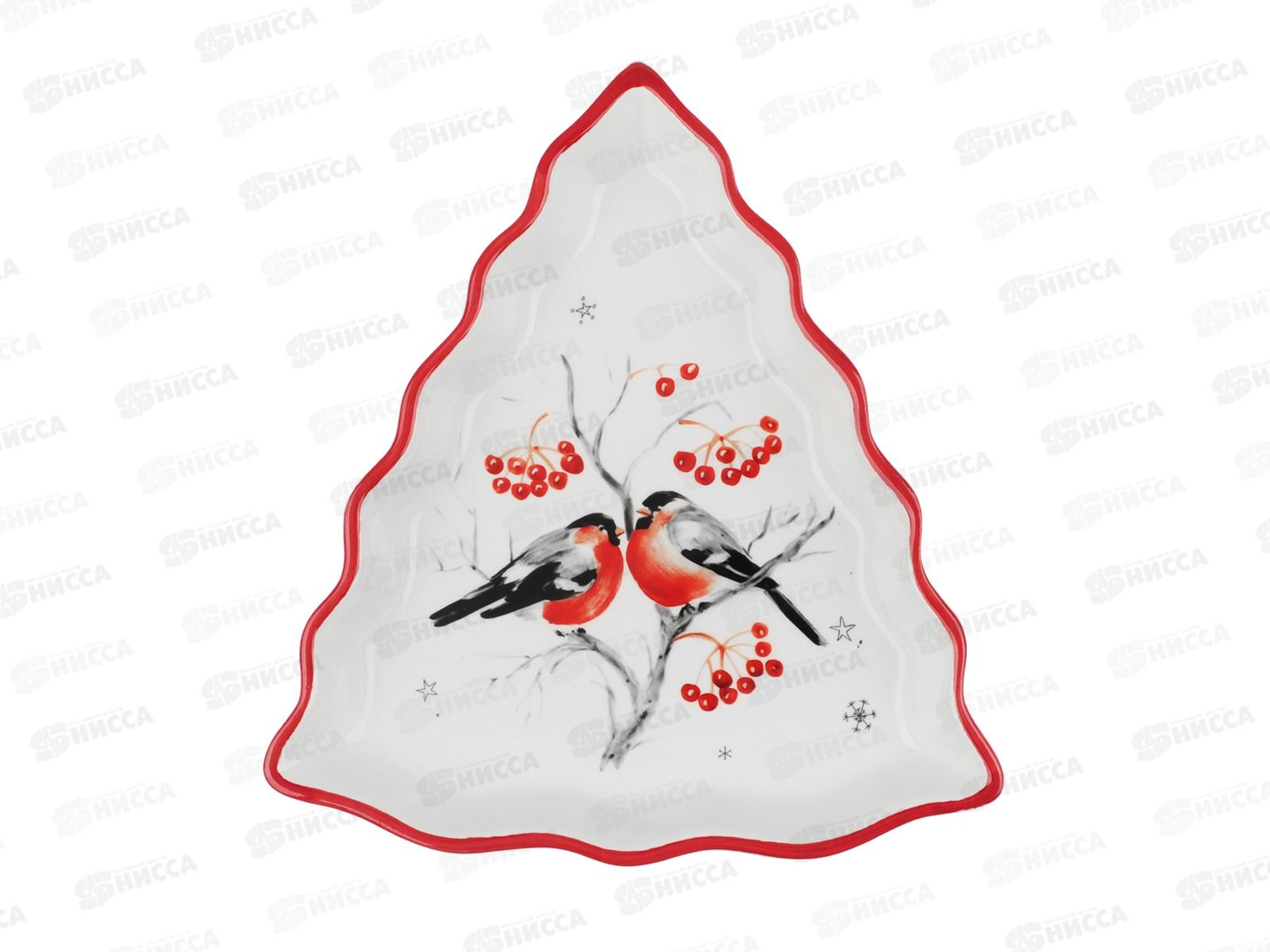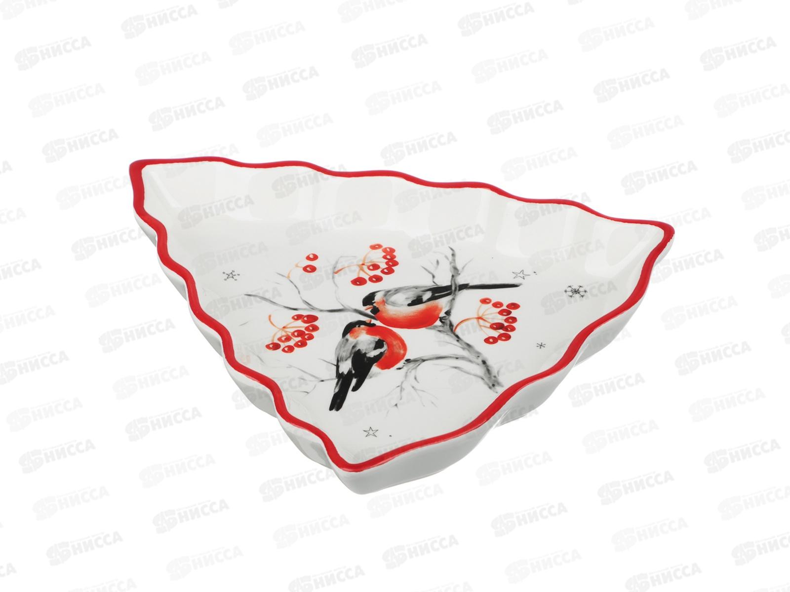 Блюдо "Снегири" Елка 21*16*3см керамика 820-682 г