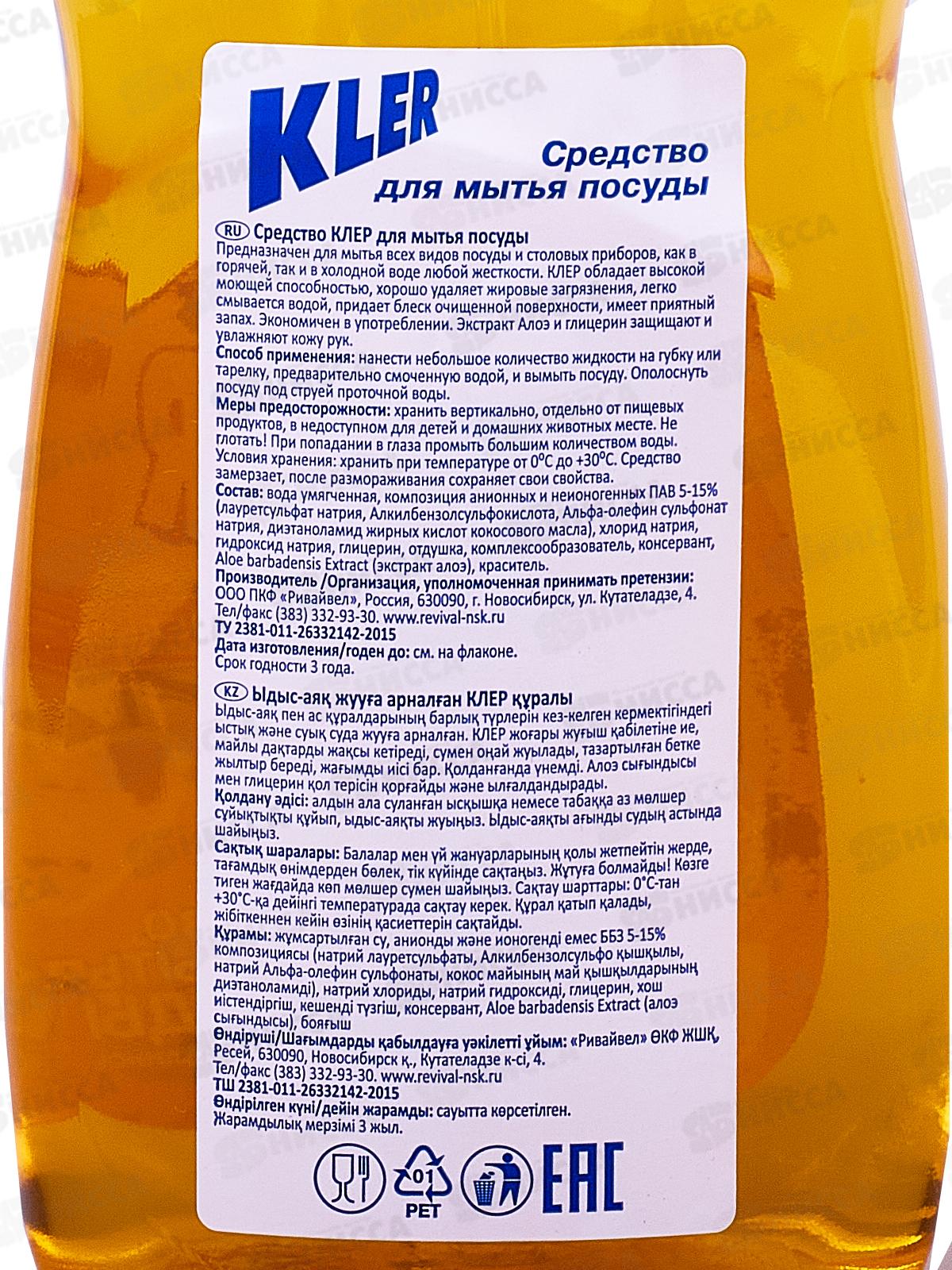 КЛЕР средство для мытья посуды 500мл АПЕЛЬСИН *10