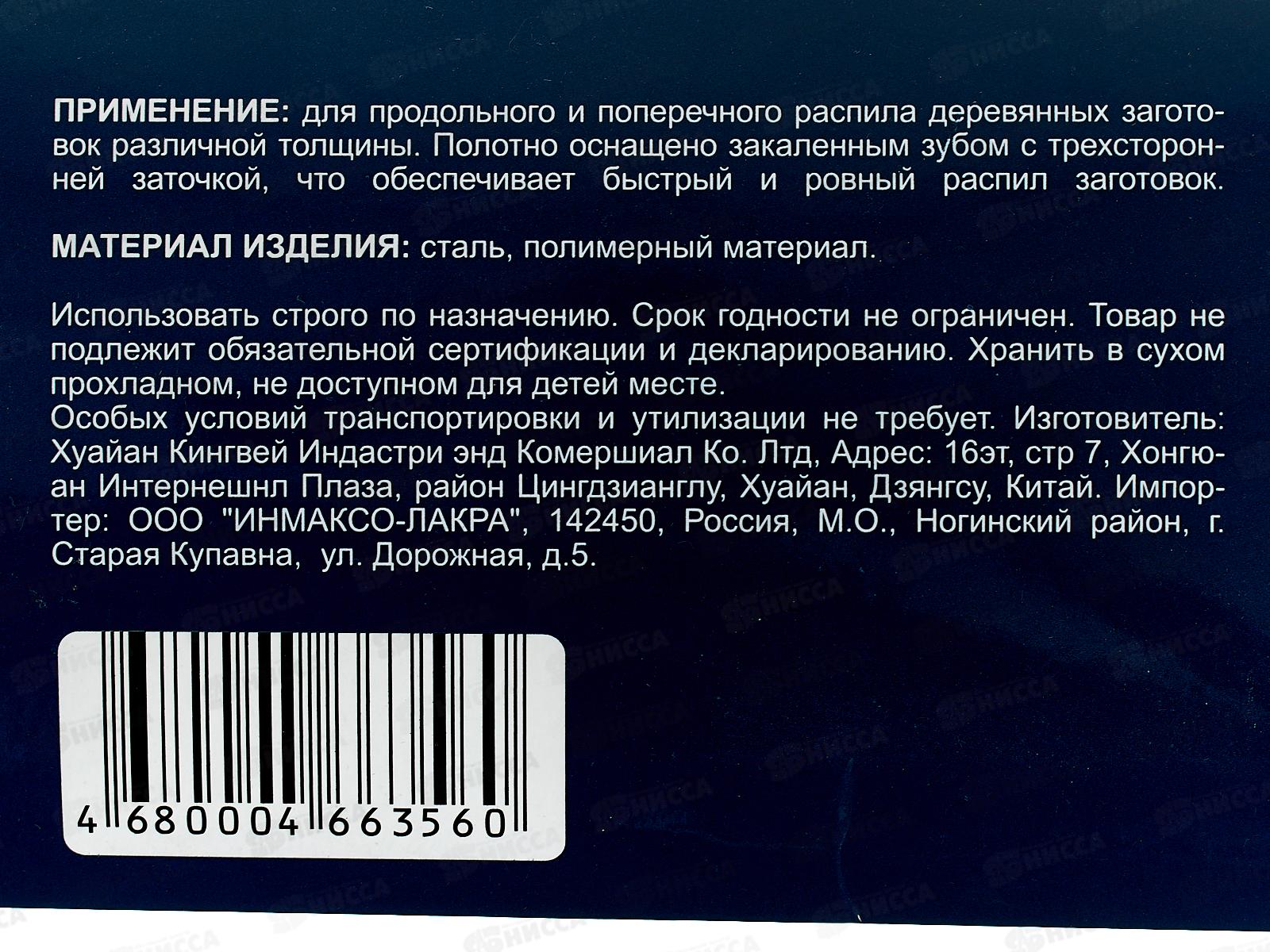 трехсторонней заточкой и шагом 7 TPI (3,5 мм), что обеспечивает быстрый и ровный распил заготовок в обоих направлениях. Эргономичная двухкомпонентная рукоятка создает надежный захват, исключает проскальзывание инструмента в руке, что снижает утомляемость при работе и защищает руки от истирания.