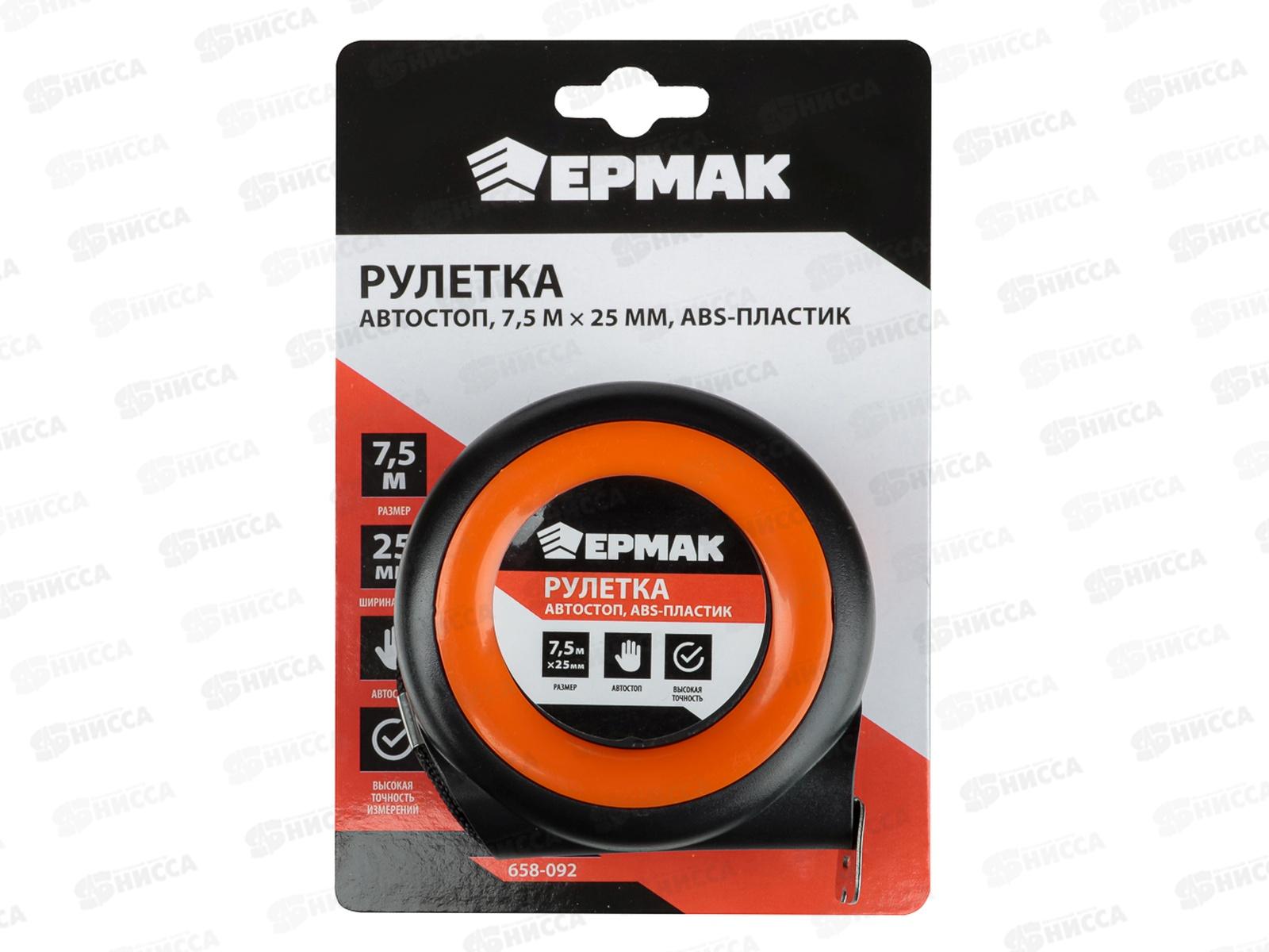 Рулетка 7,5м*25мм ЕРМАК Автостоп ABS пластик 658-092 г