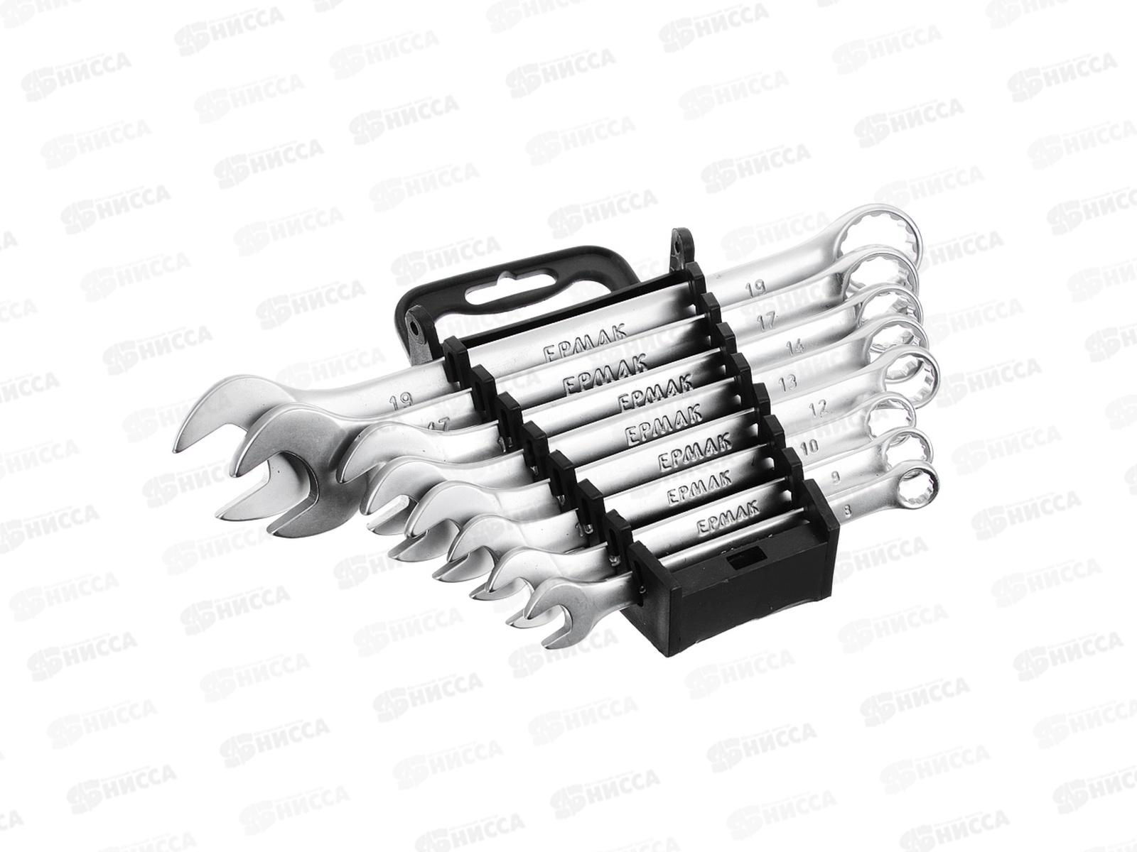 Набор ключей рожково-накидных 8 предметов 8-19мм пластиковый холдер матовые CRV 736-049 *30